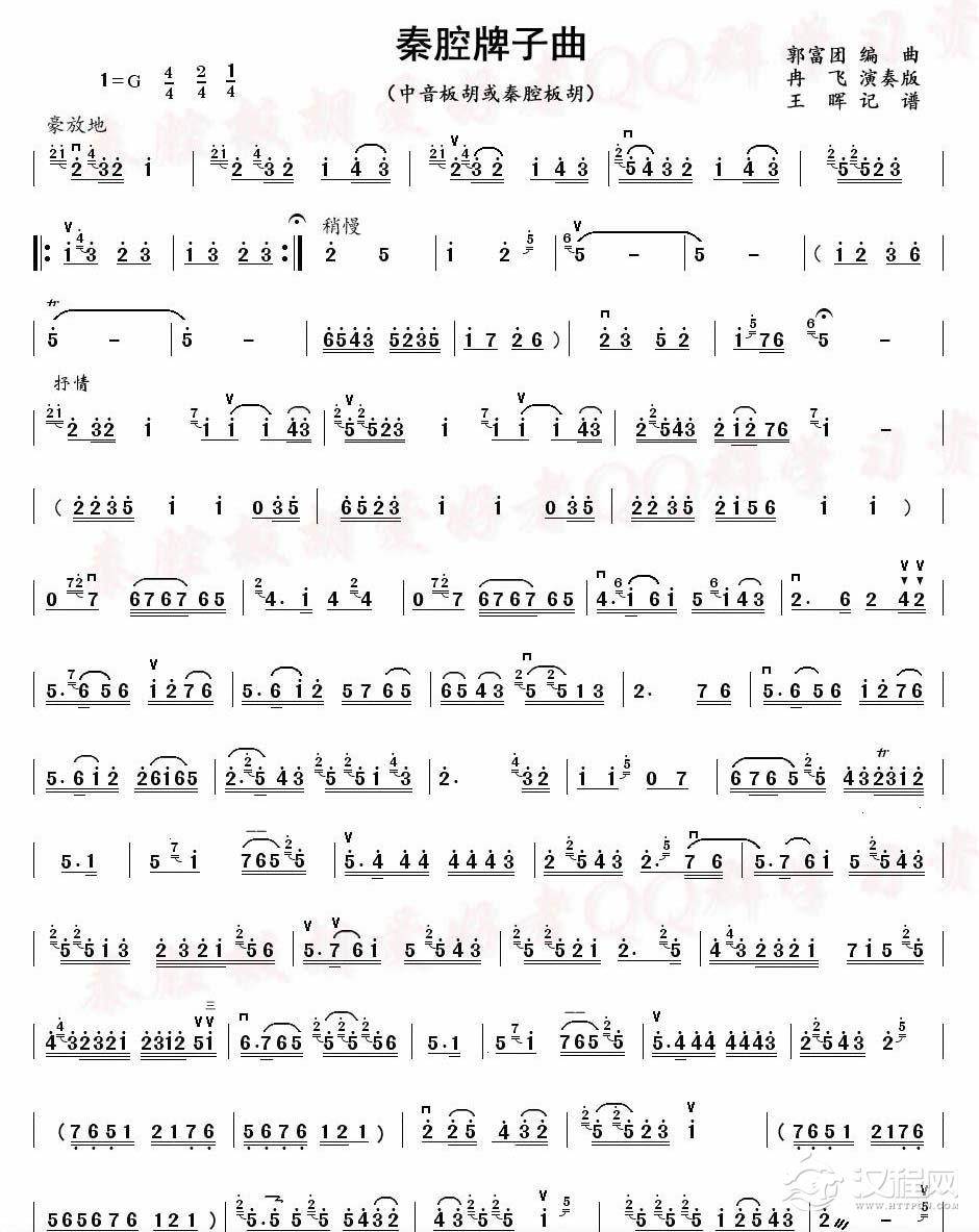 曲谱大全中音板胡独奏曲谱《秦月》简谱