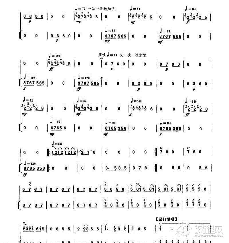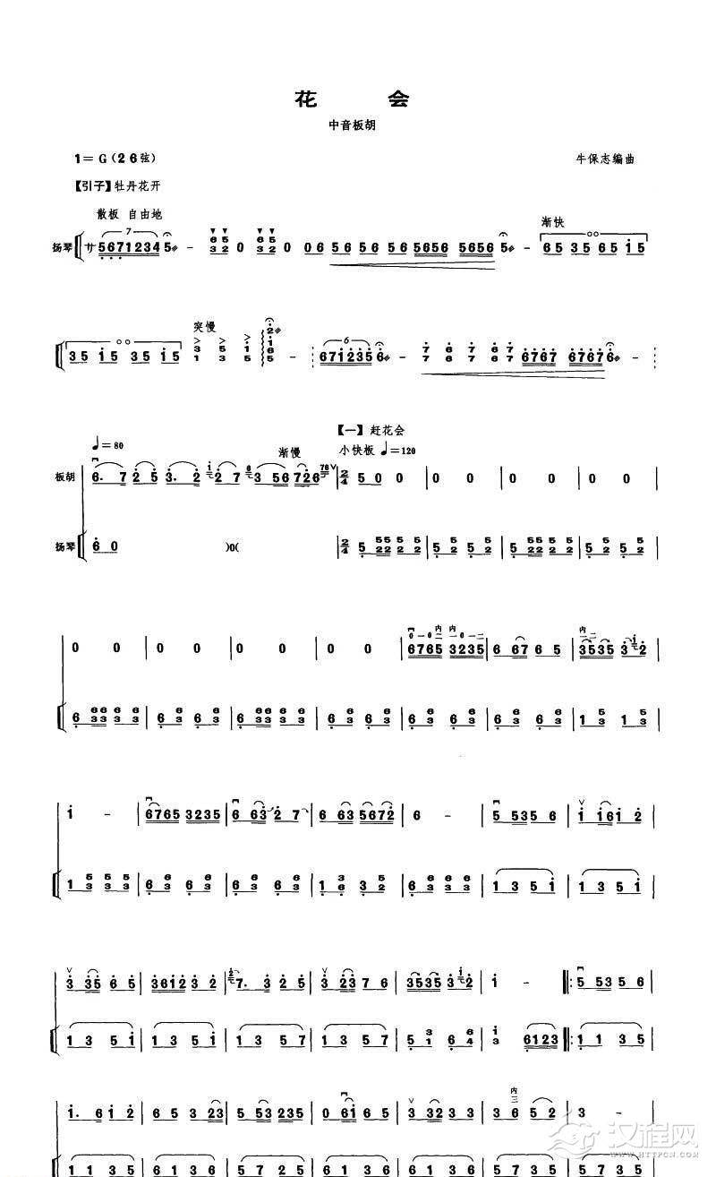 曲谱大全中音板胡曲谱《秦腔牌子曲》中音板胡/扬琴伴奏