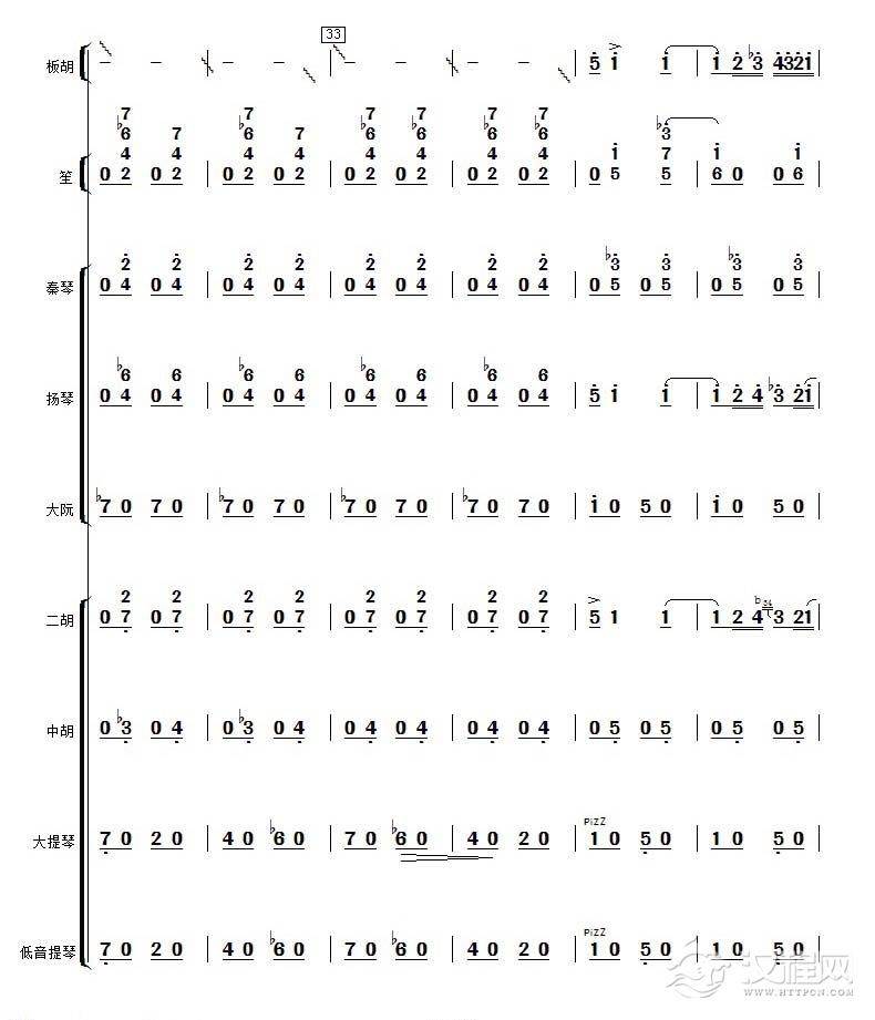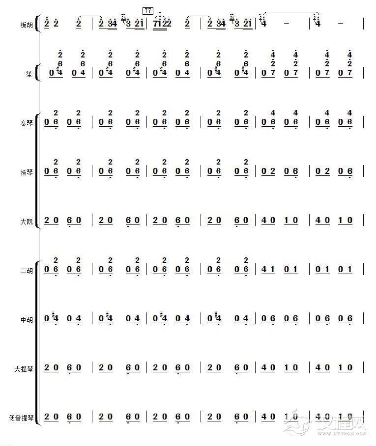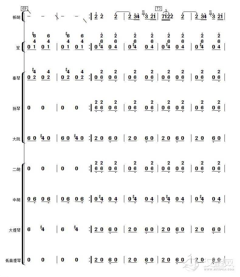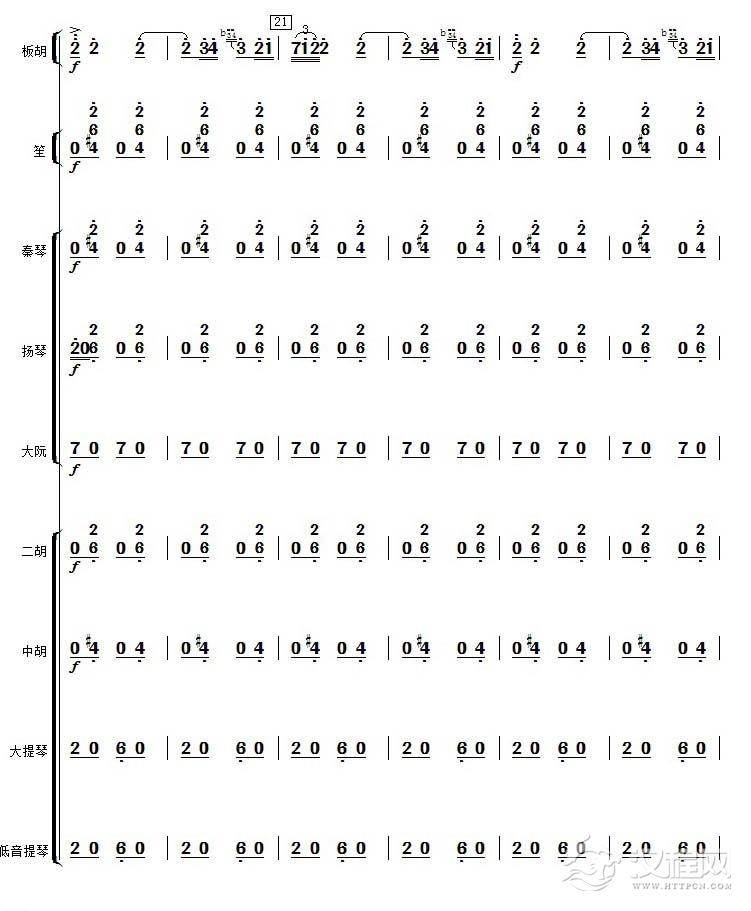 曲谱大全中音板胡曲谱《花会》扬琴伴奏谱