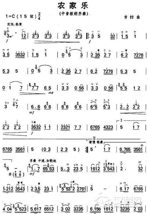 曲谱大全中音板胡曲谱《春耕》简谱