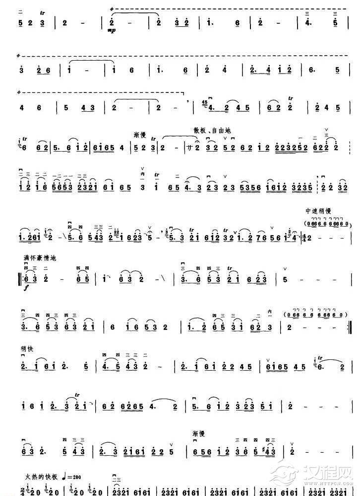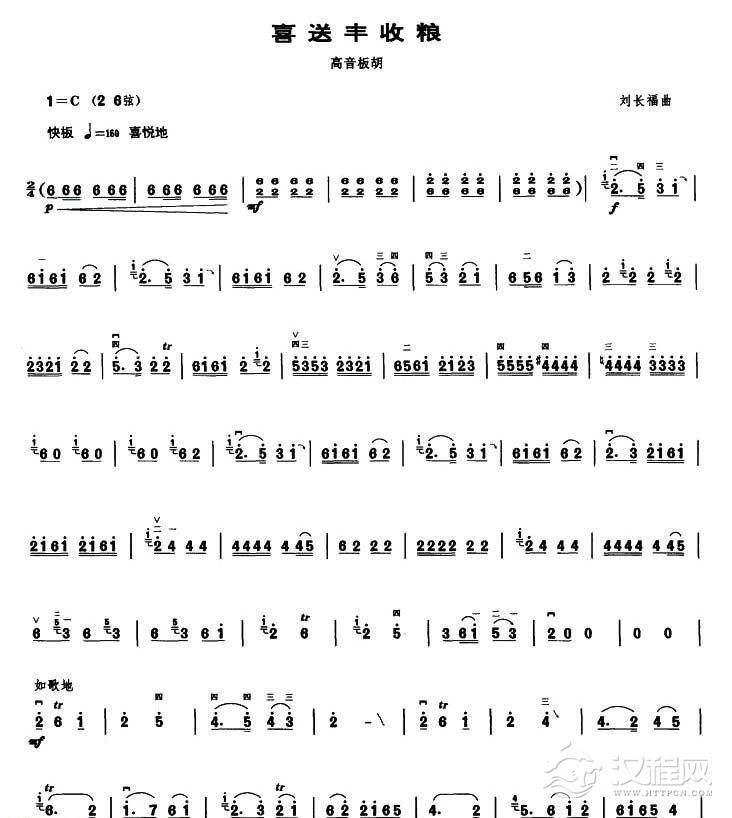 高音板胡曲谱《丰收乐》扬琴伴奏谱
