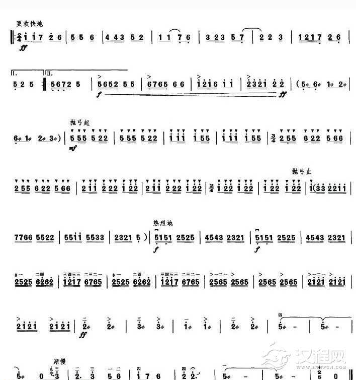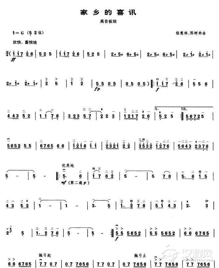曲谱大全高音板胡曲谱《山乡欢歌》扬琴伴奏谱