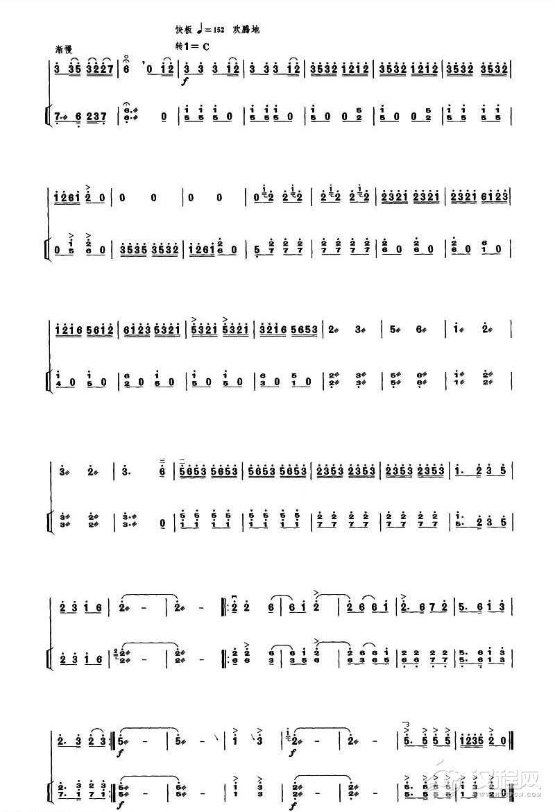 曲谱大全高音板胡曲谱《丰收乐》扬琴伴奏谱