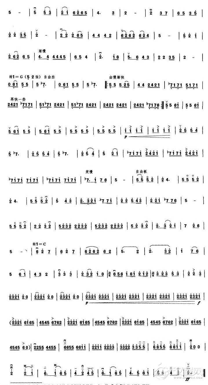 曲谱大全高音板胡独奏曲谱《春城节日》扬琴伴奏谱
