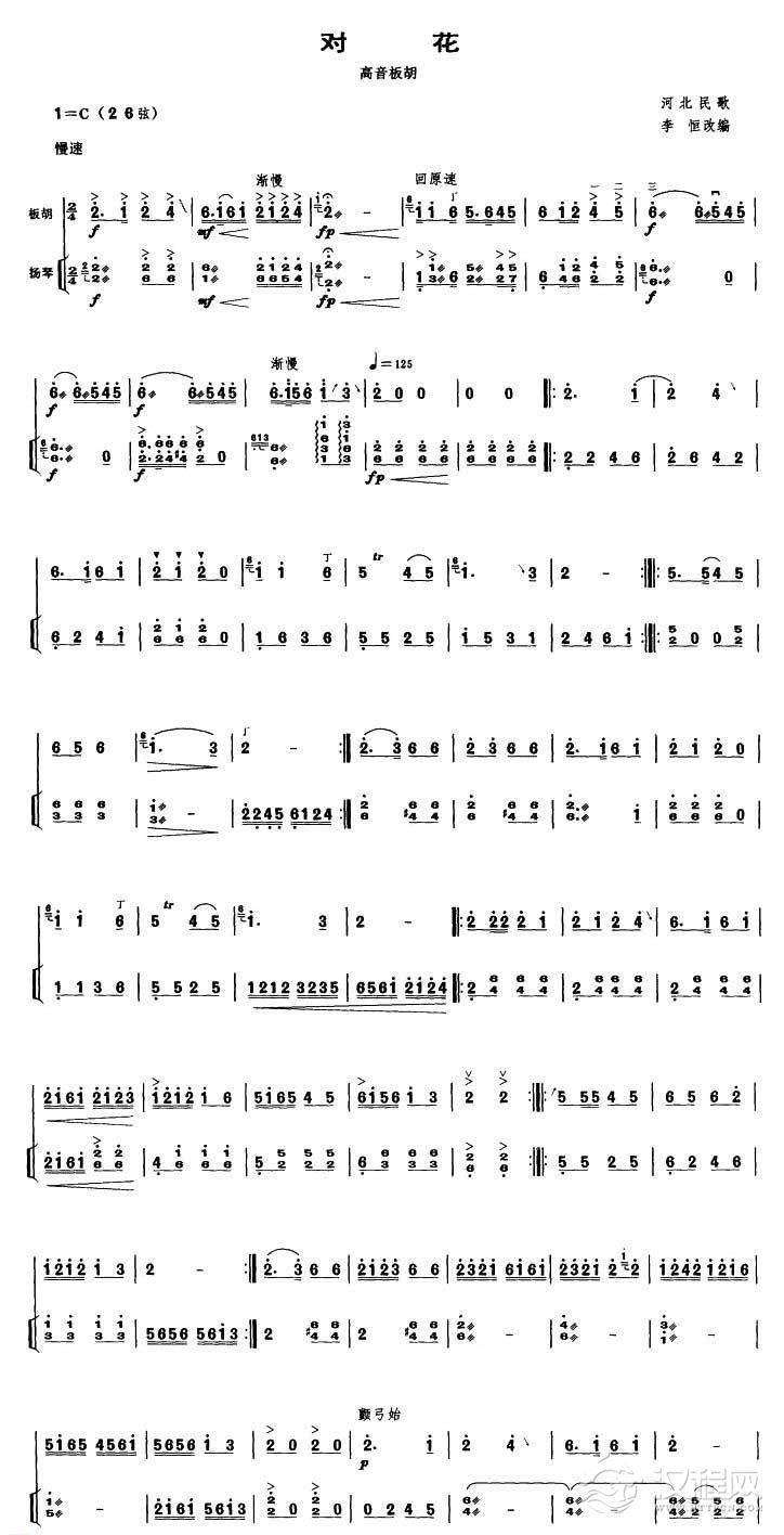 曲谱大全高音板胡曲谱《东北风》扬琴伴奏谱