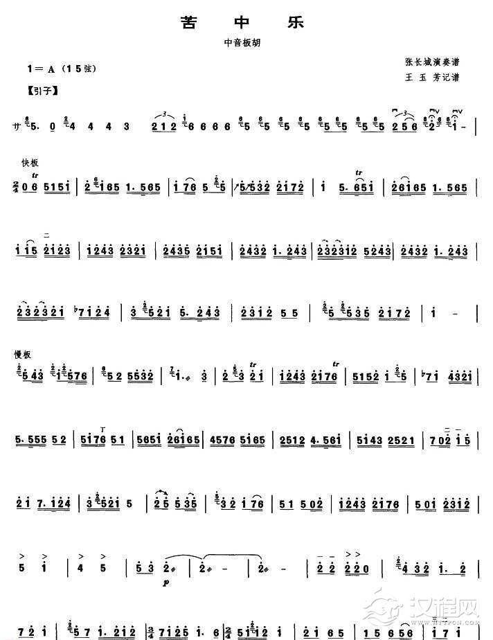 曲谱大全中音板胡曲谱《苦韵》简谱