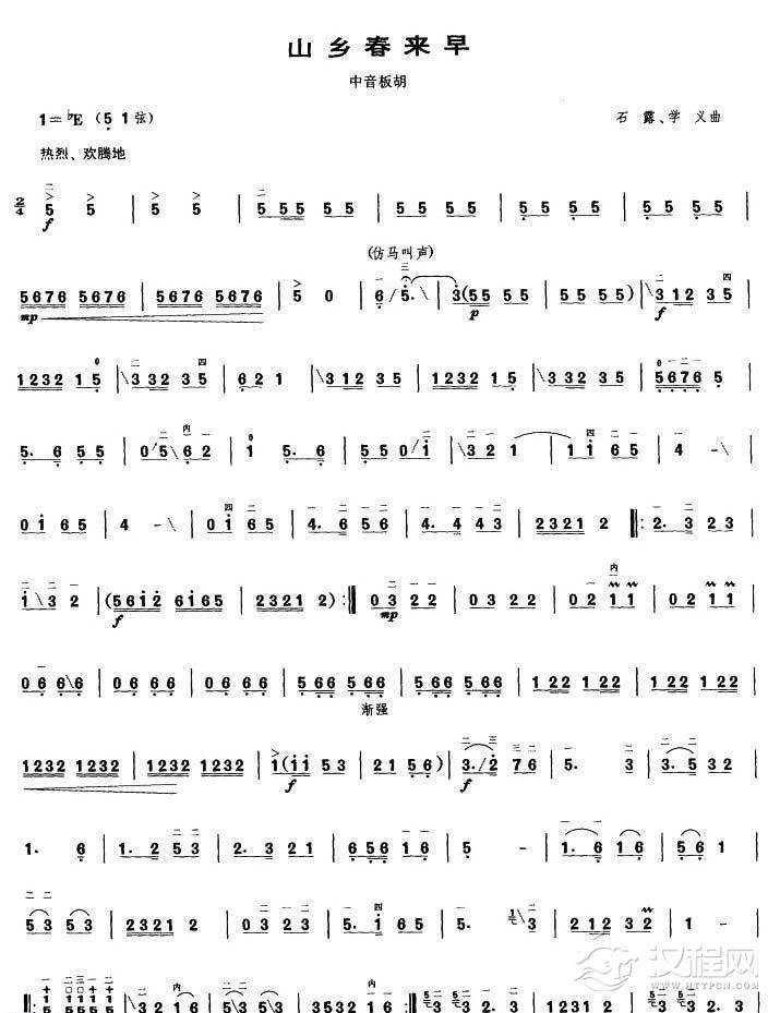 曲谱大全高音板胡曲谱《翻身的日子》扬琴伴奏谱