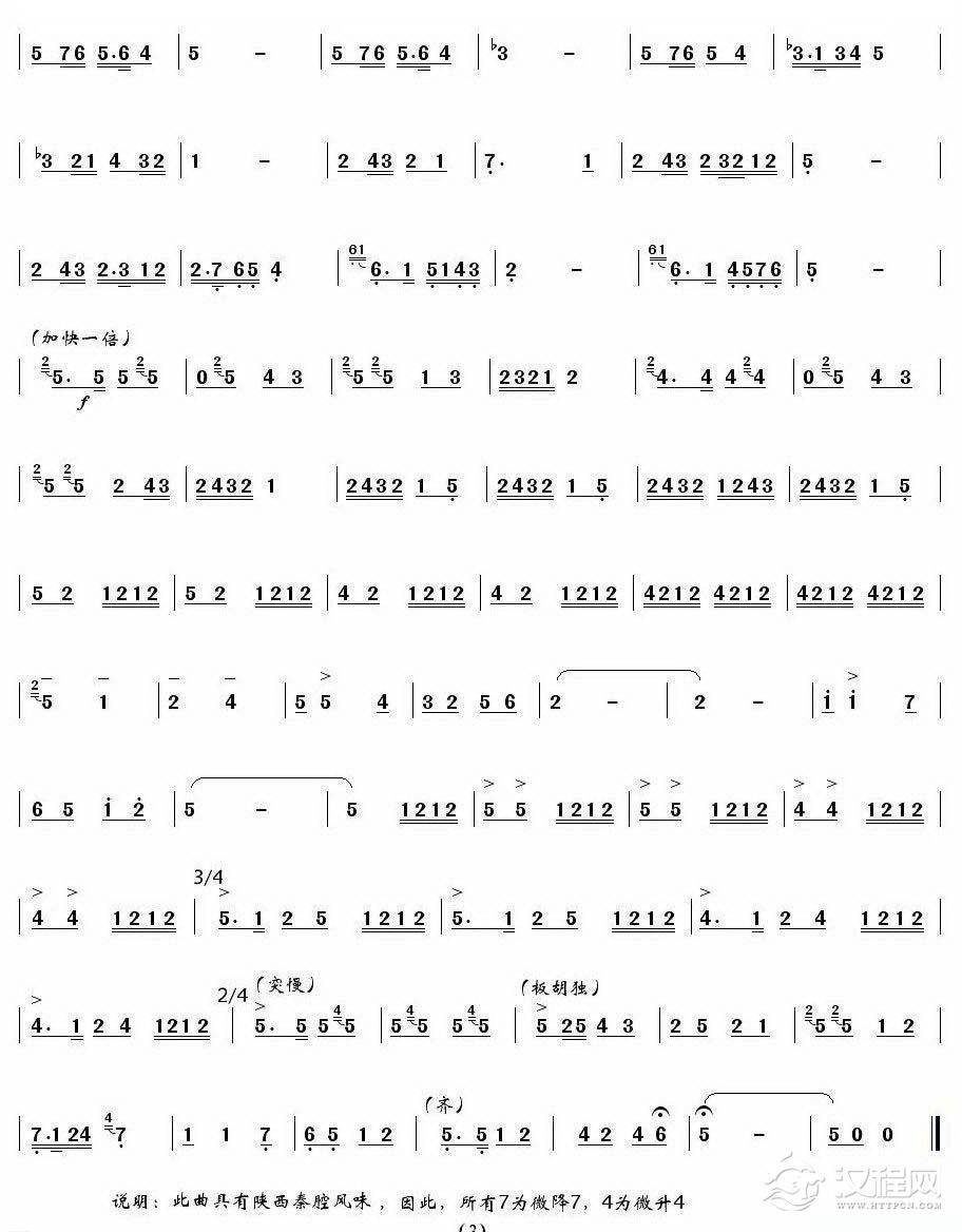曲谱大全中音板胡曲谱《秦川忆事曲》简谱