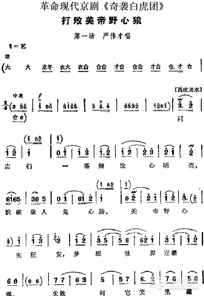 戏曲曲谱革命现代京剧《奇袭白虎团》主要唱段:怒涛汹涌激汉江(第二场 崔大娘唱段)