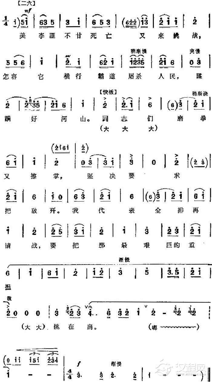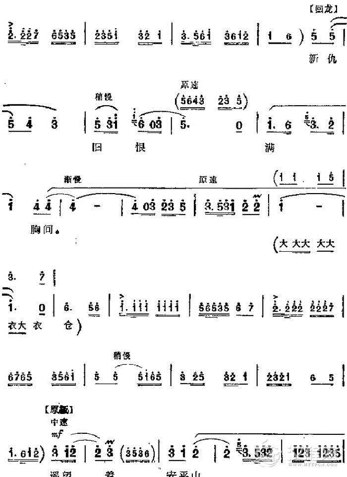 戏曲曲谱走过一山又一冲