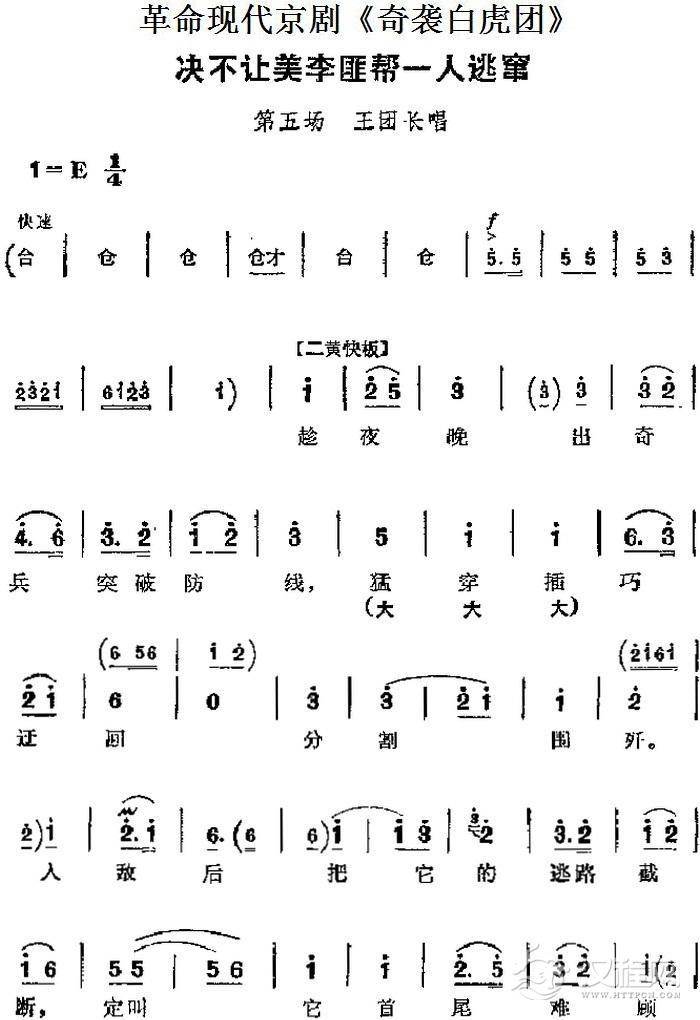 戏曲曲谱革命现代京剧《奇袭白虎团》主要唱段:打败美帝野心狼(第一场 严伟才唱段)