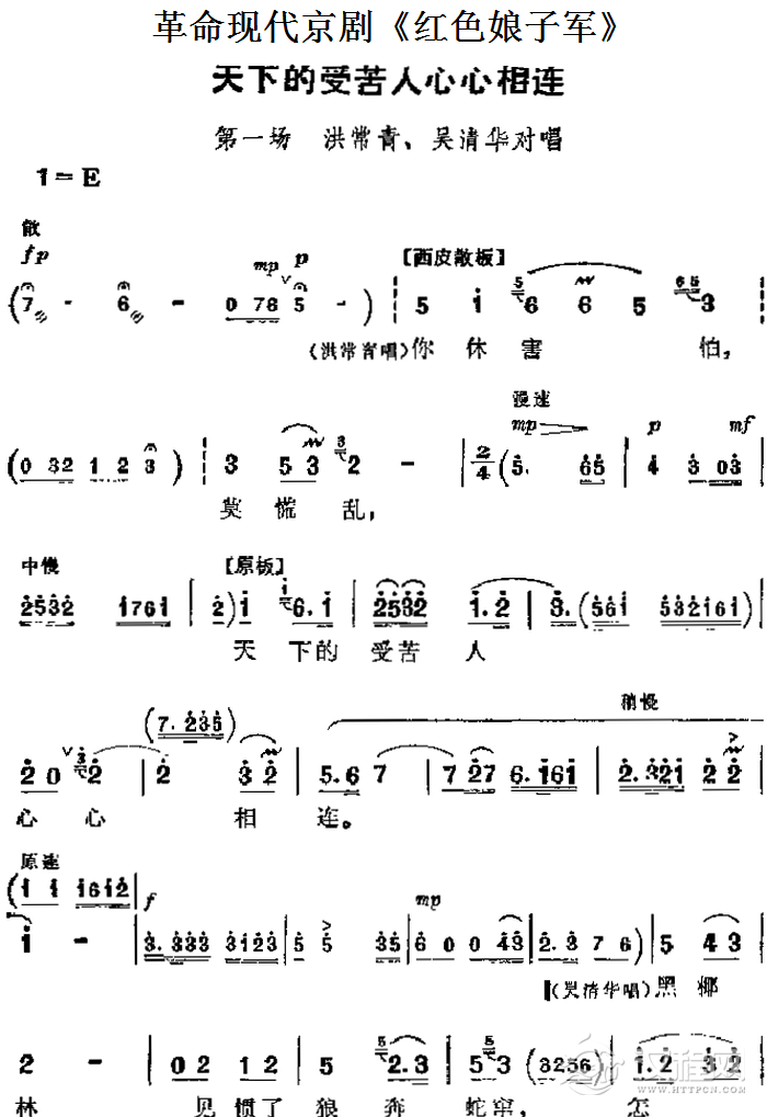 戏曲曲谱革命现代京剧《红色娘子军》主要唱段:同心踏碎旧世界(第二场 连长唱段)