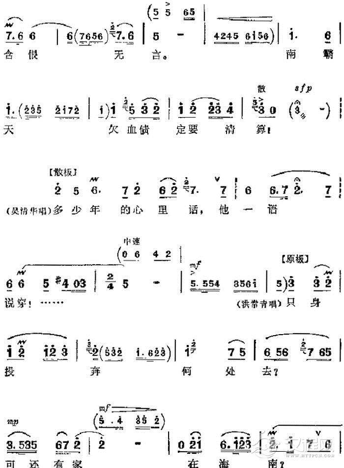 戏曲曲谱走过一山又一冲