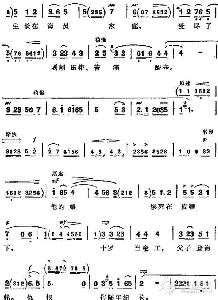 戏曲曲谱革命现代京剧《红色娘子军》主要唱段:天下的受苦人心心相连(第一场 洪常青、吴清华对唱)