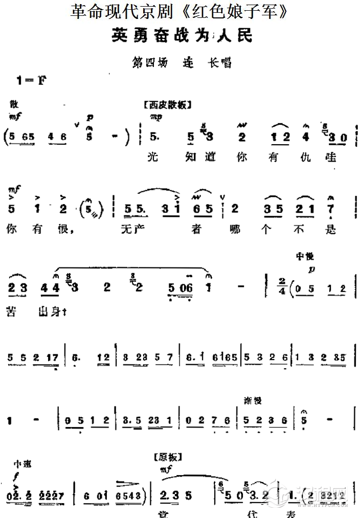 戏曲曲谱革命现代京剧《红色娘子军》主要唱段:永葆这战斗青春(第四场 吴清华唱段)