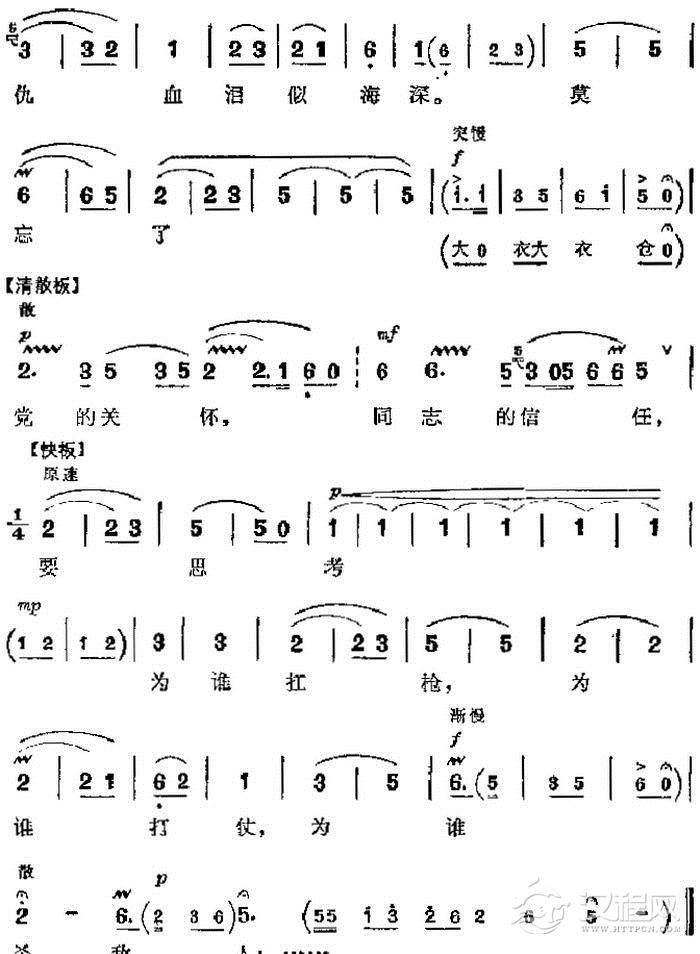 戏曲曲谱革命现代京剧《奇袭白虎团》主要唱段:怒涛汹涌激汉江(第二场 崔大娘唱段)