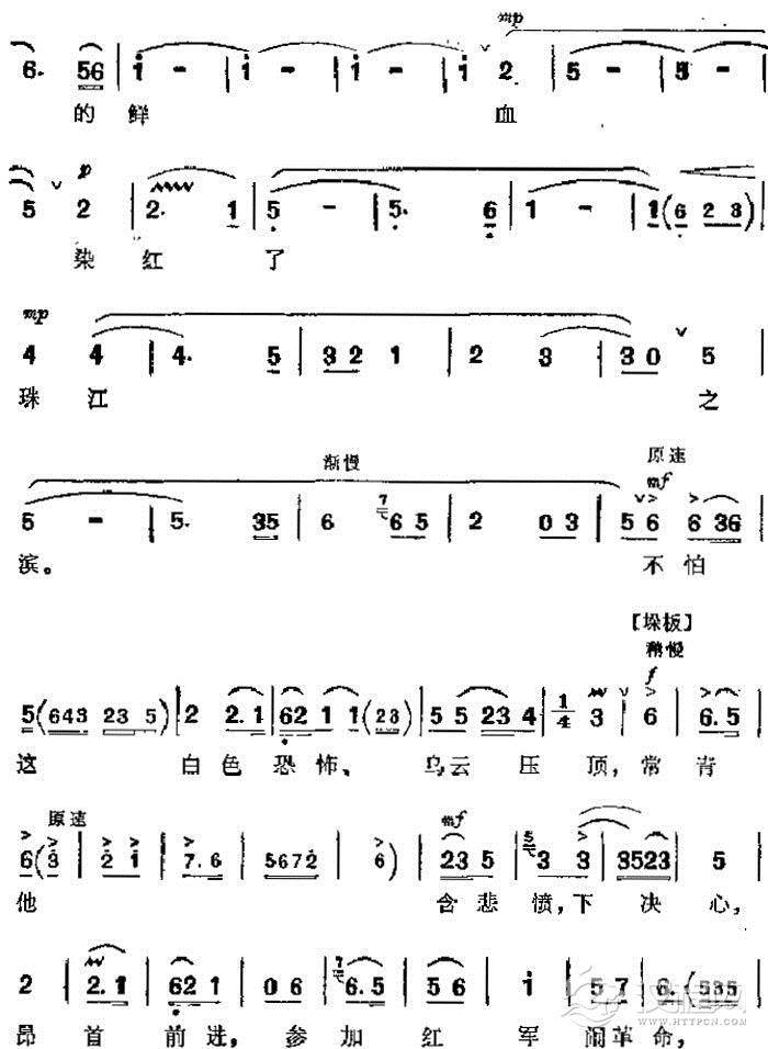 戏曲曲谱革命现代京剧《红色娘子军》主要唱段:永远冲锋向前方(第六场 洪常青唱段)