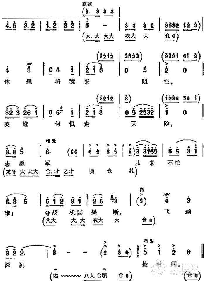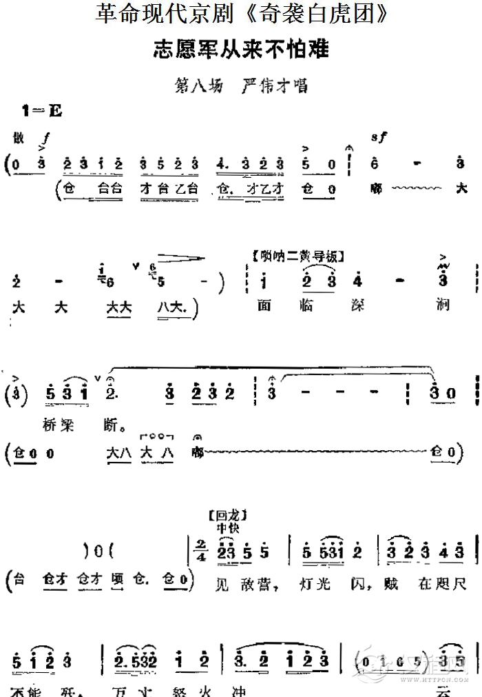戏曲曲谱革命现代京剧《奇袭白虎团》主要唱段:怒涛汹涌激汉江(第二场 崔大娘唱段)