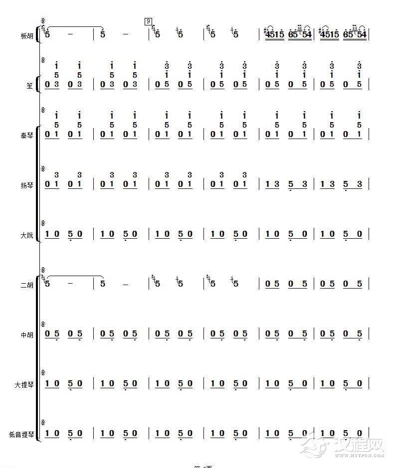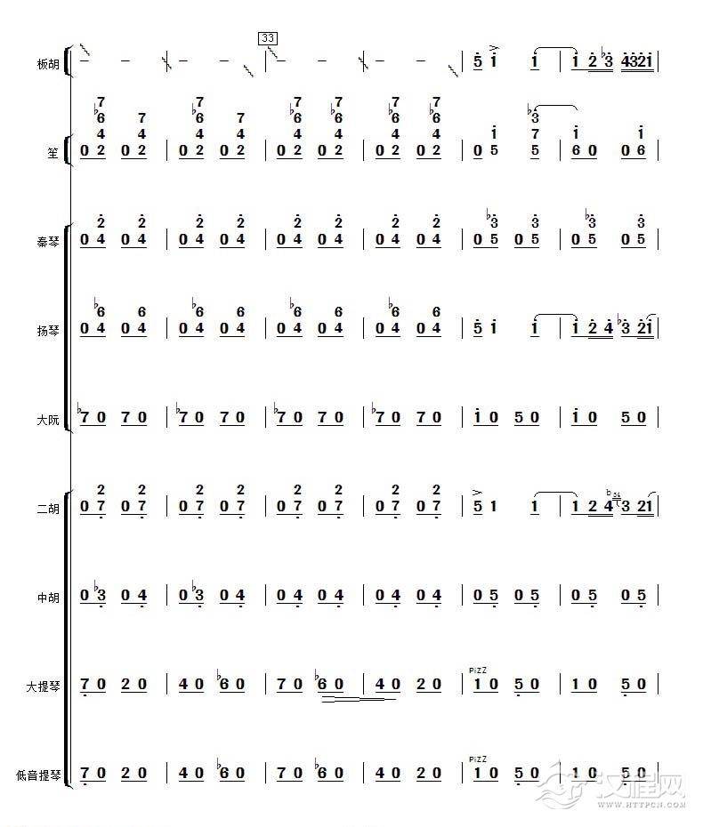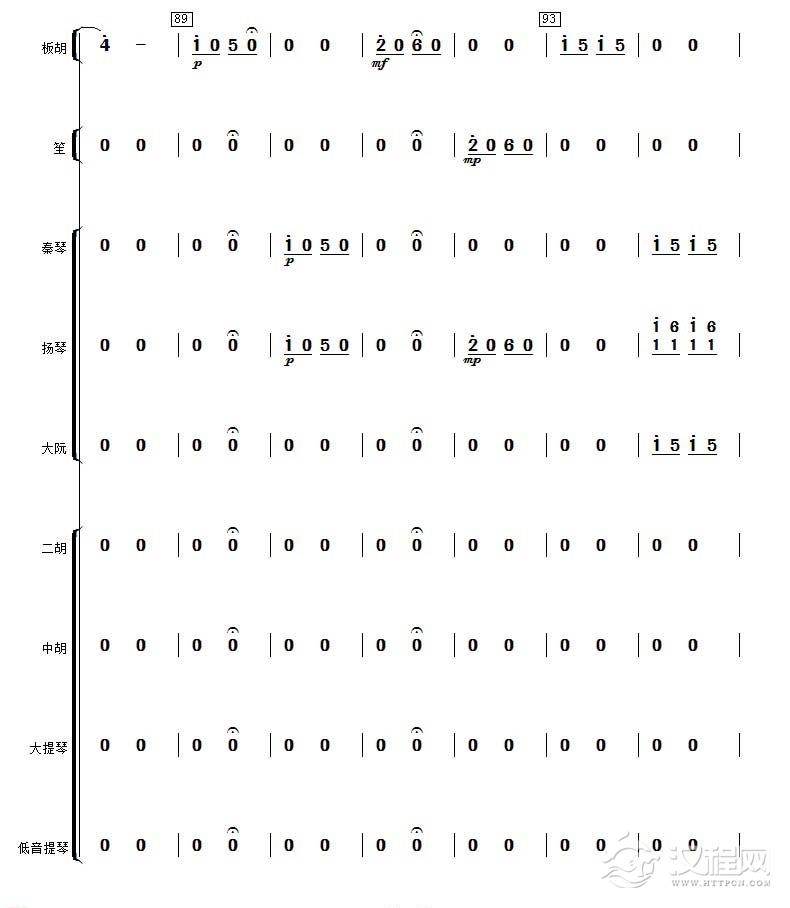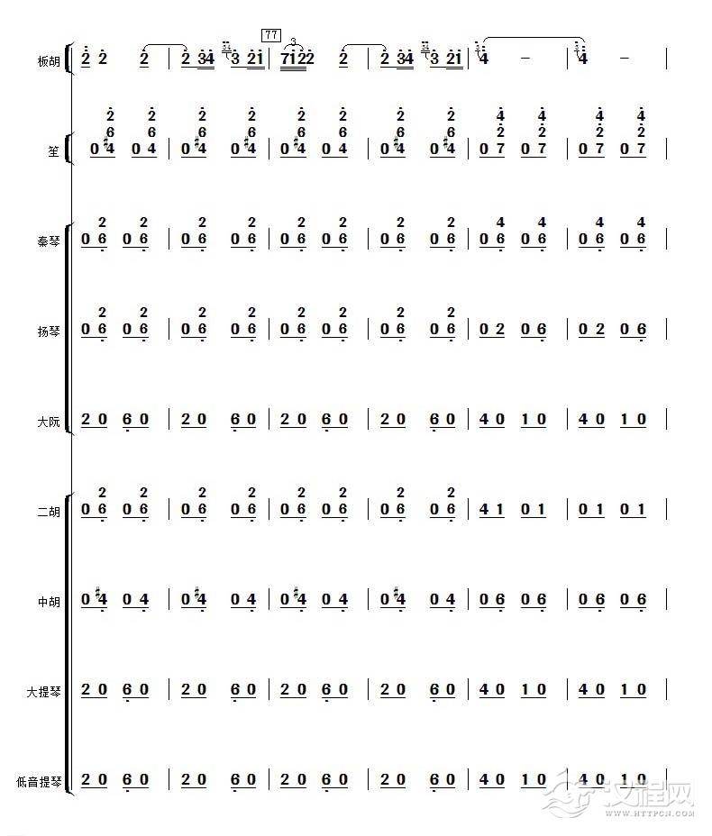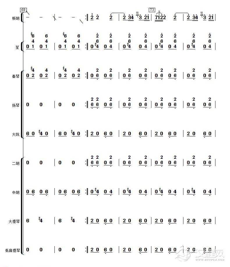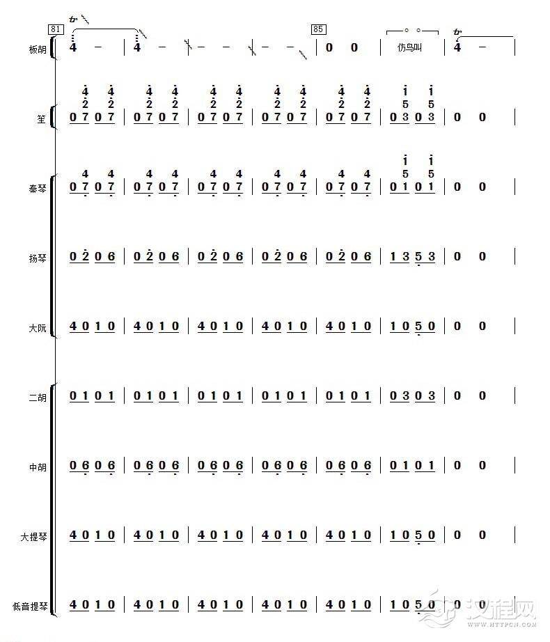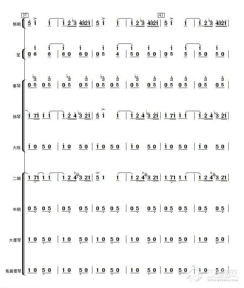 曲谱大全高音板胡曲谱《月芽五更》扬琴伴奏谱