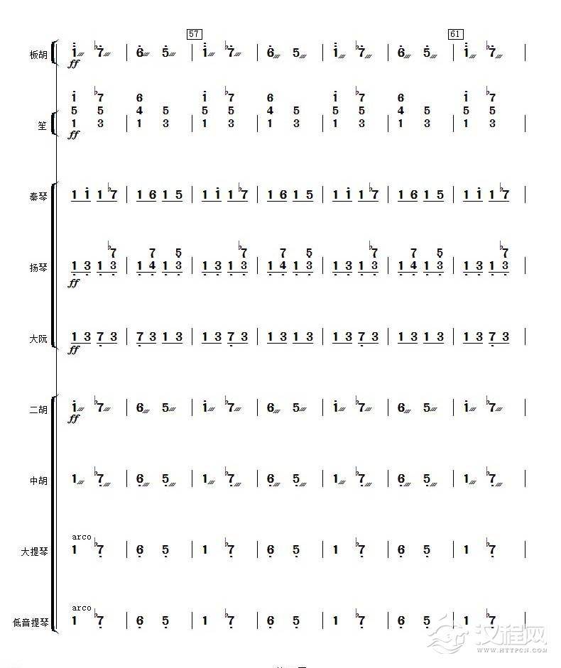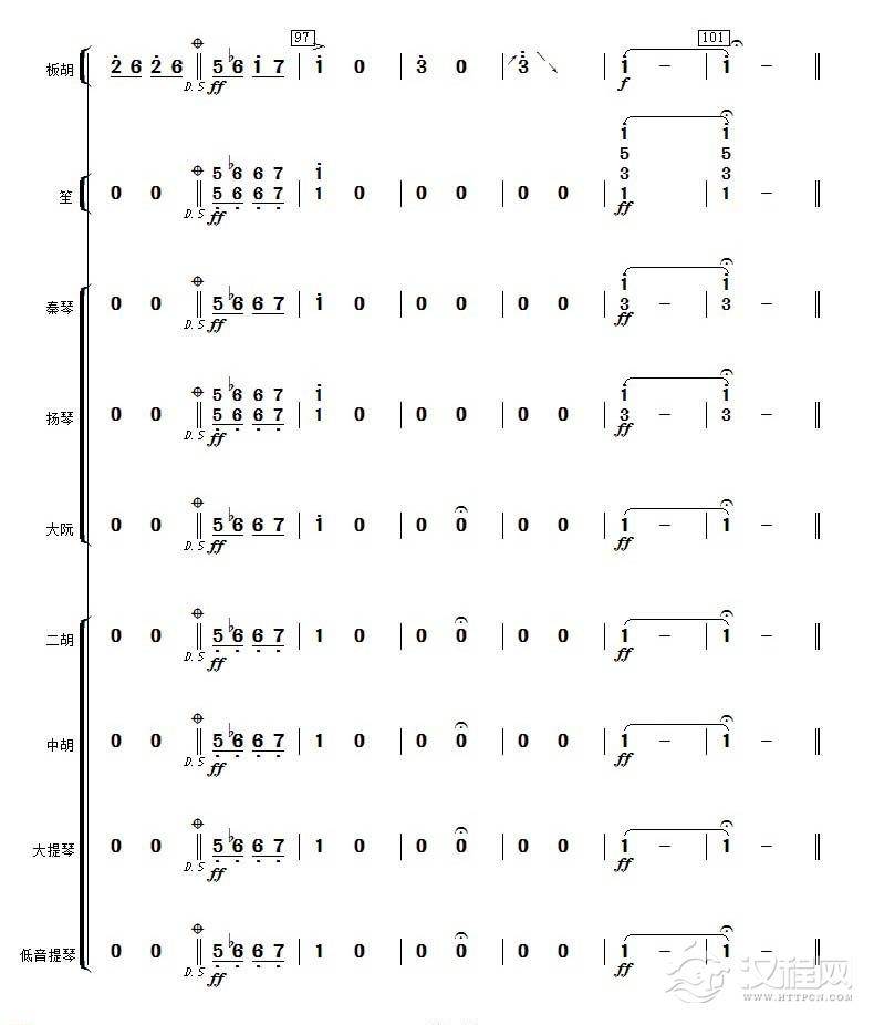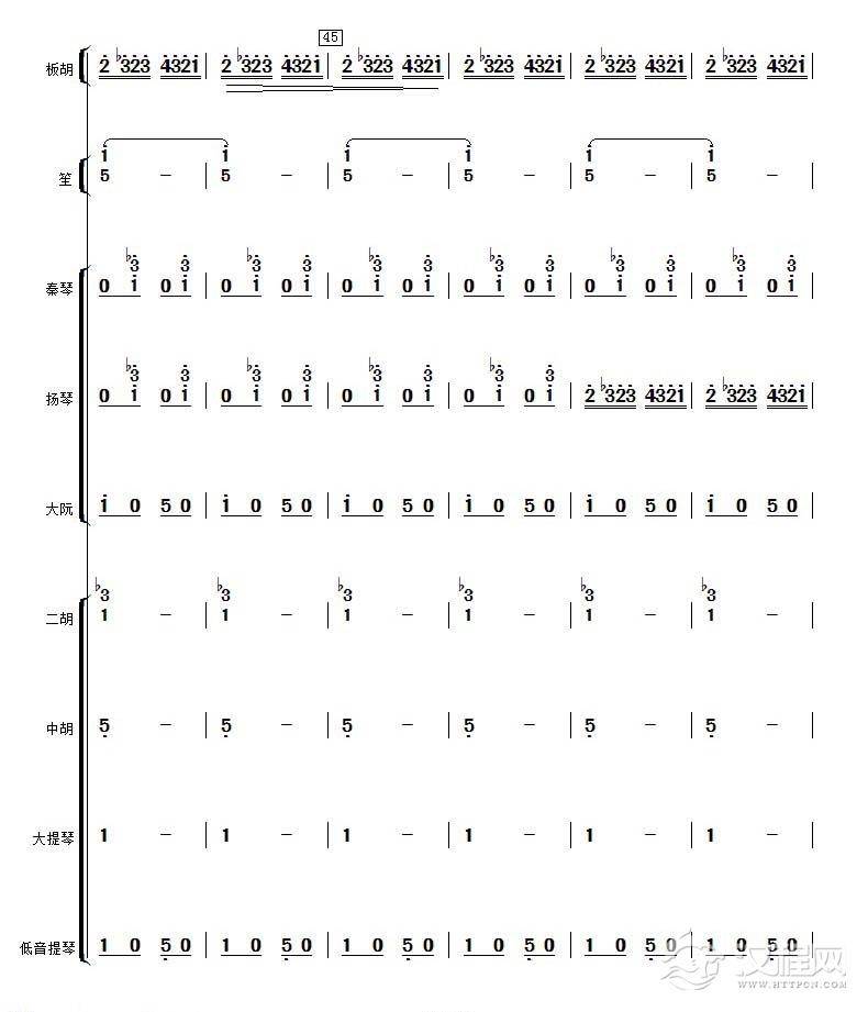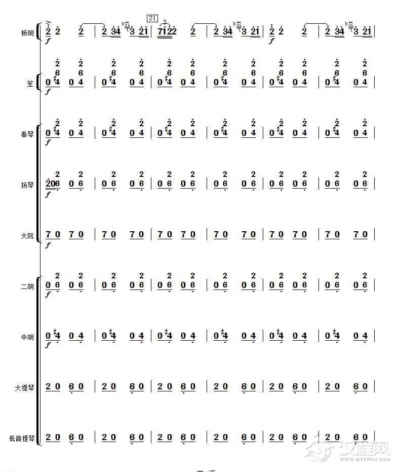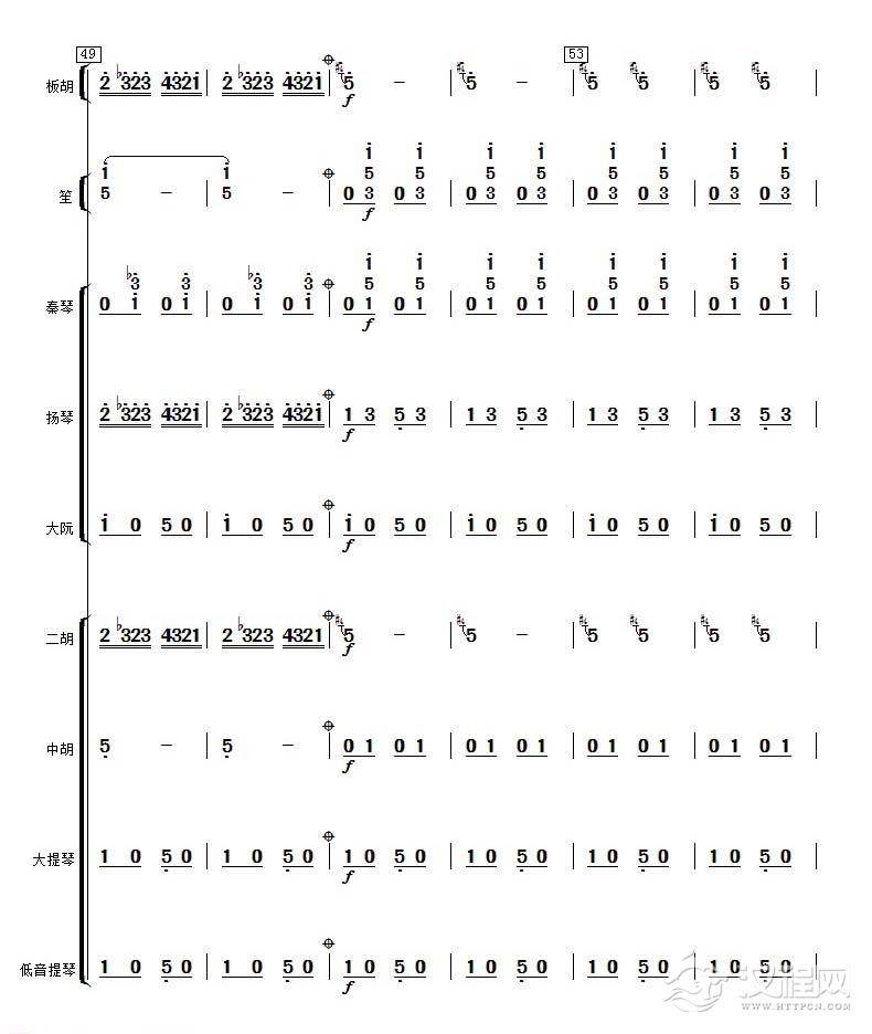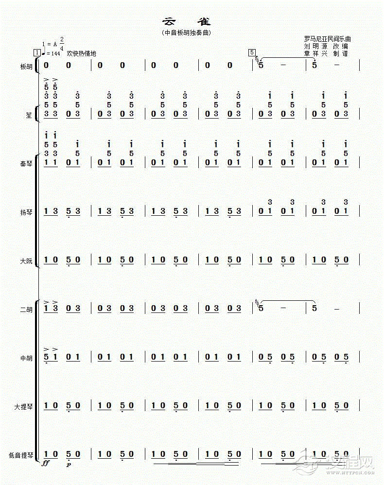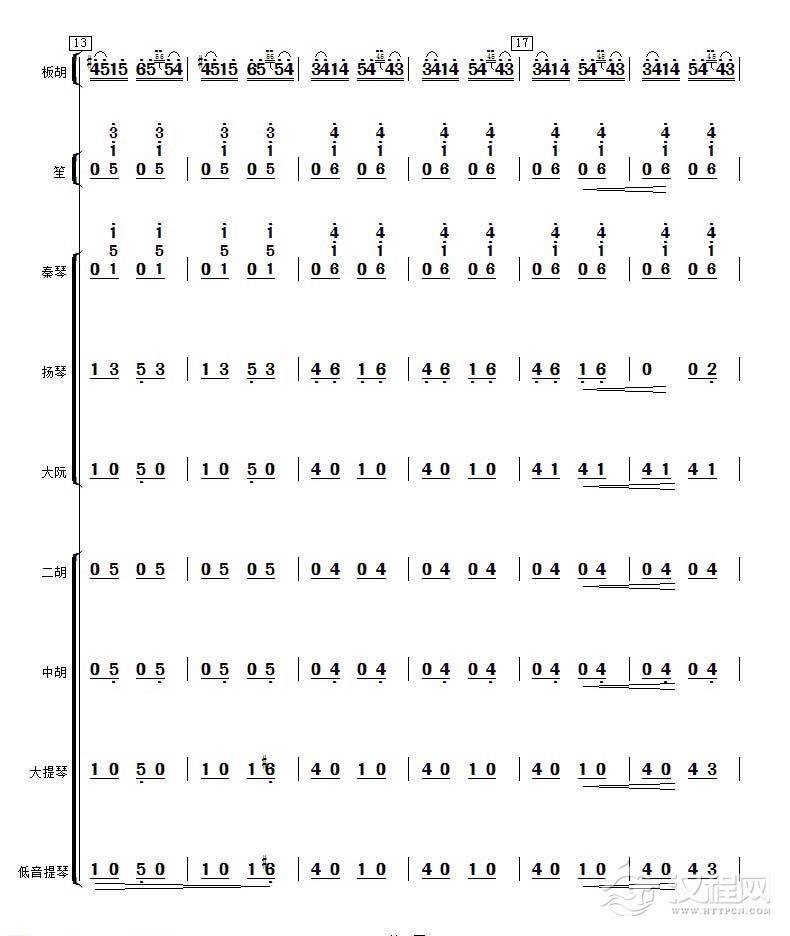 曲谱大全高音板胡曲谱《月芽五更》扬琴伴奏谱
