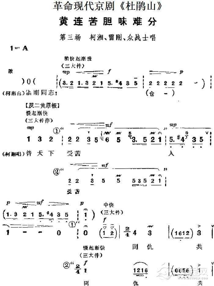 戏曲曲谱革命现代京剧《杜鹃山》主要唱段:家住安源(第三场 柯湘唱段)