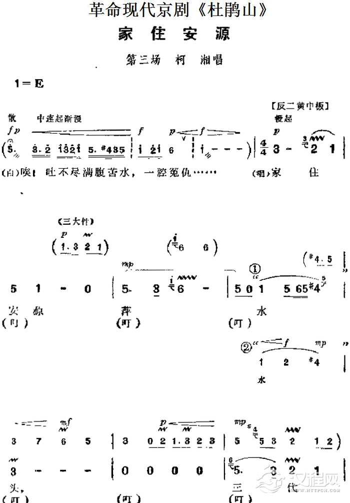 戏曲曲谱革命现代京剧《杜鹃山》主要唱段:黄连苦胆味难分(第三场 柯湘、雷刚、众战士唱段)