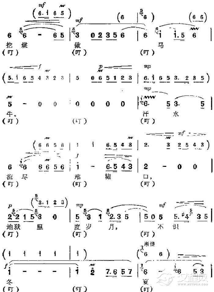 戏曲曲谱哥哥你走西口(京调山西民歌)