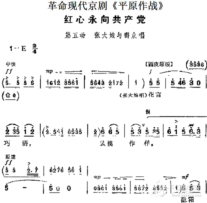 戏曲曲谱革命现代京剧《平原作战》主要唱段:枪林弹雨军民隔不断(第三场 张大娘、小英对唱)