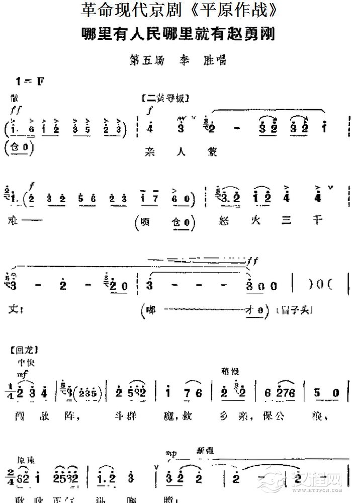 戏曲曲谱革命现代京剧《平原作战》主要唱段:红心永向共产党(第五场 张大娘与群众唱段)