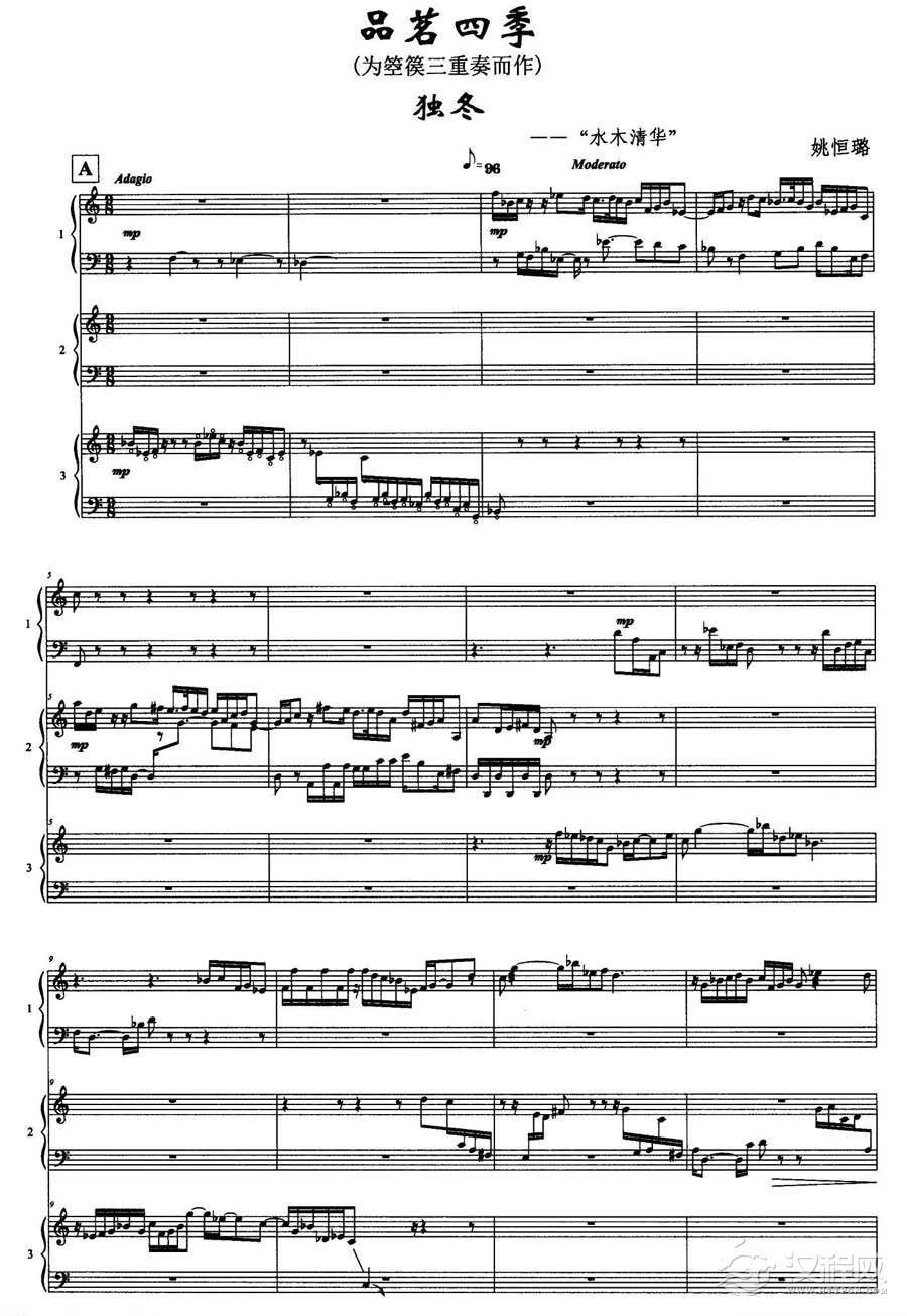 曲谱大全箜篌三重奏曲谱《品茗四季:妒春》木本水源