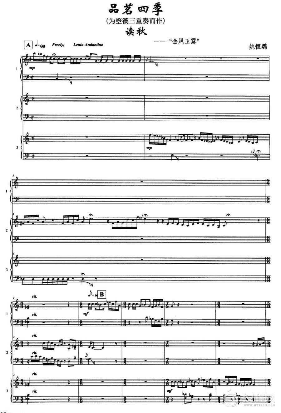 曲谱大全箜篌三重奏曲谱《品茗四季:独冬》水木清华