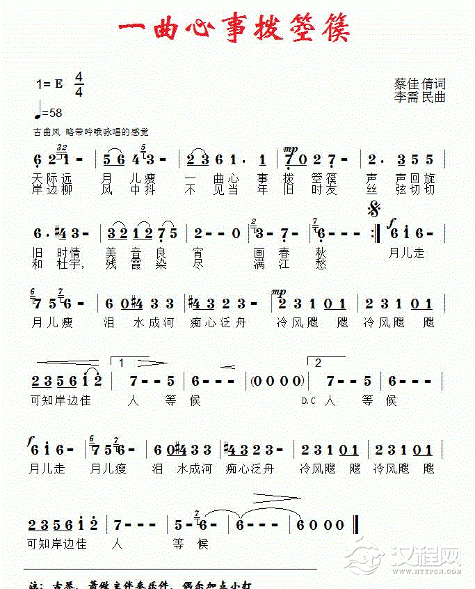 曲谱大全箜篌谱《松江春》箜篌分谱