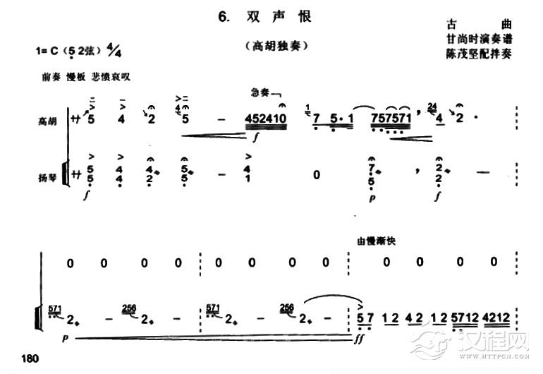 曲谱大全高胡谱子《羌山蝶舞》扬琴伴奏