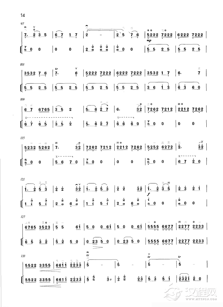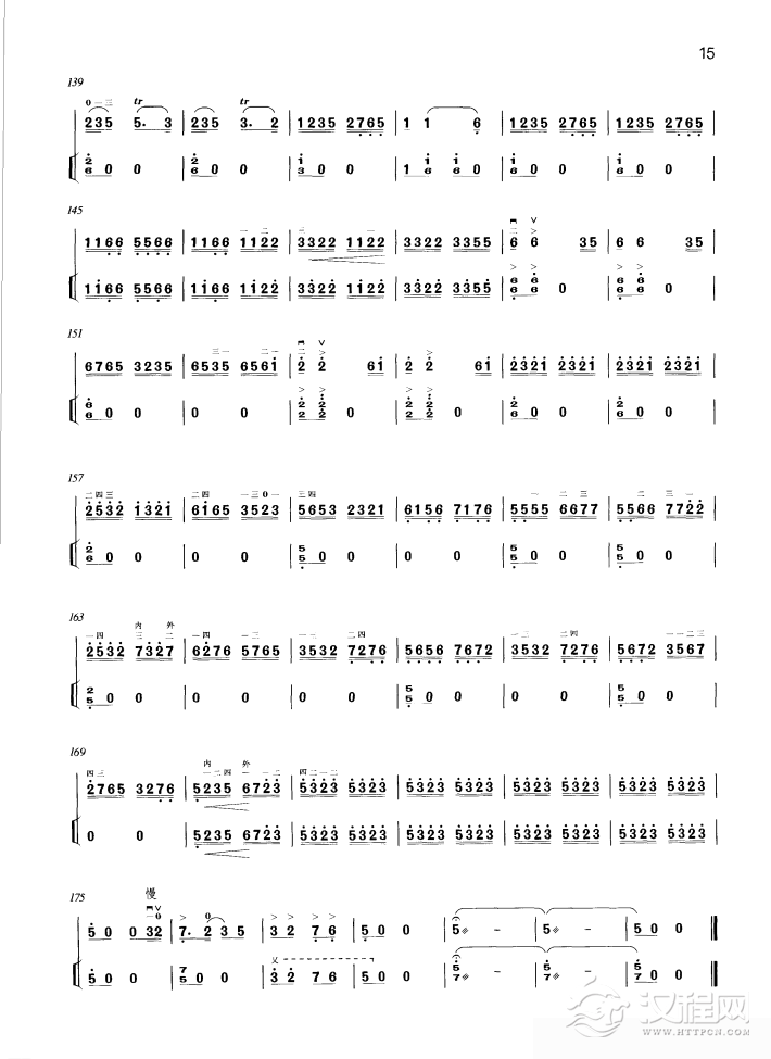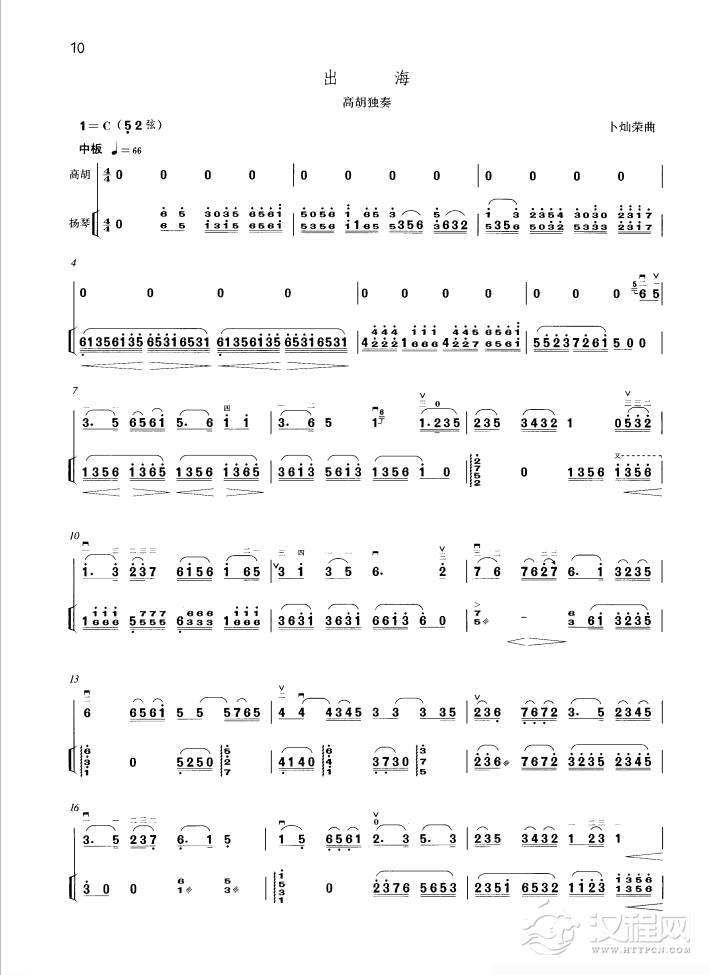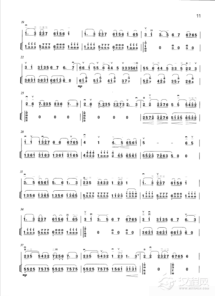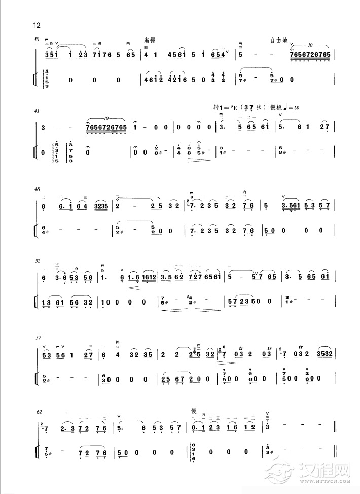 曲谱大全高胡谱子《彩云追月》二胡与笛子主旋合成谱