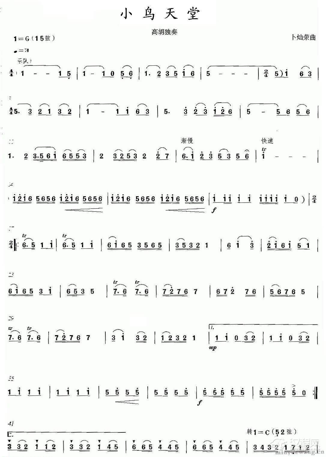 曲谱大全高胡分谱《春天的故事》