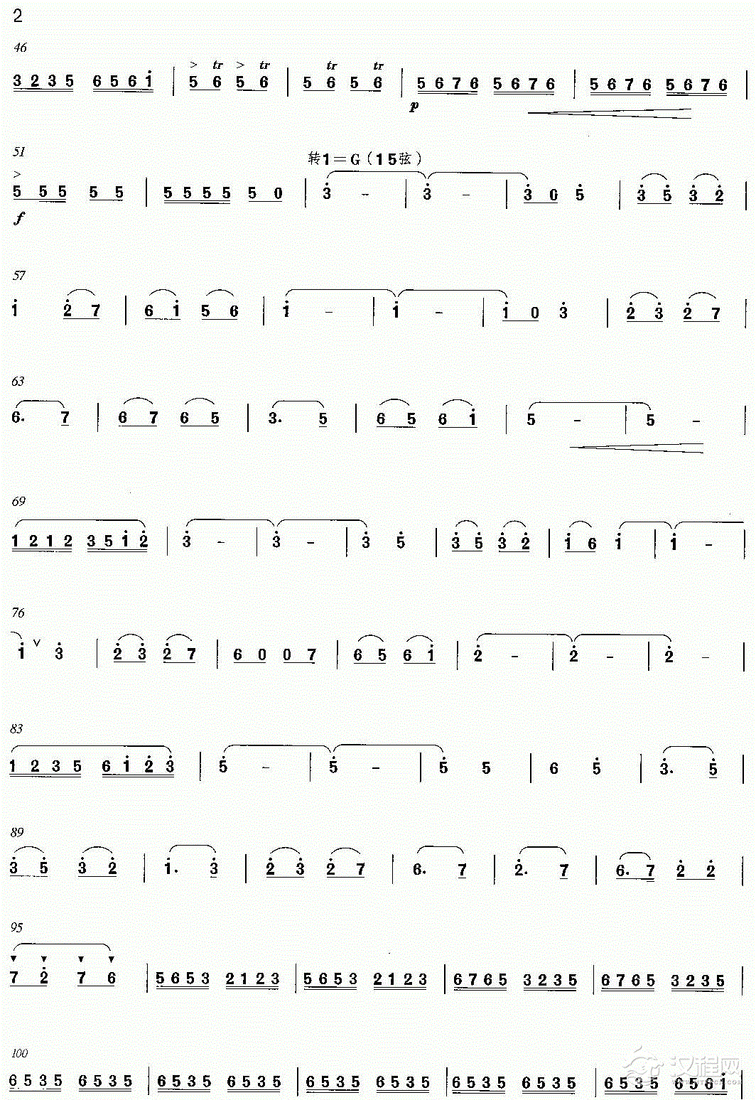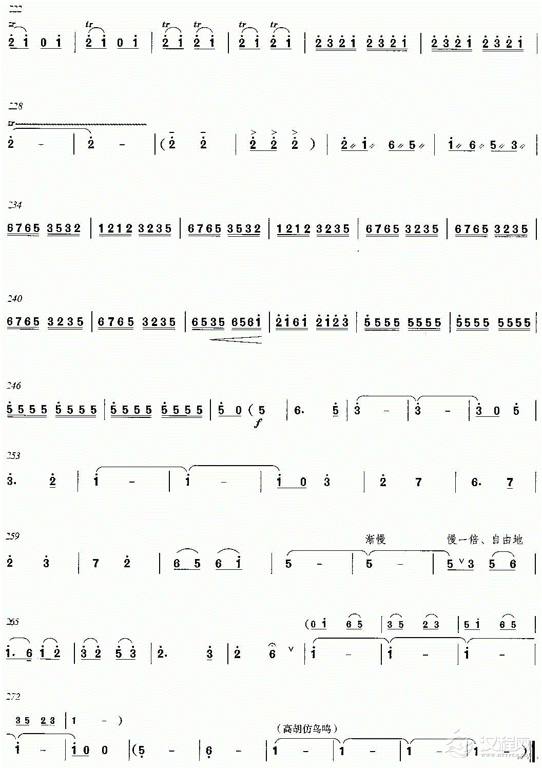 曲谱大全高胡谱子《彩云追月》二胡与笛子主旋合成谱