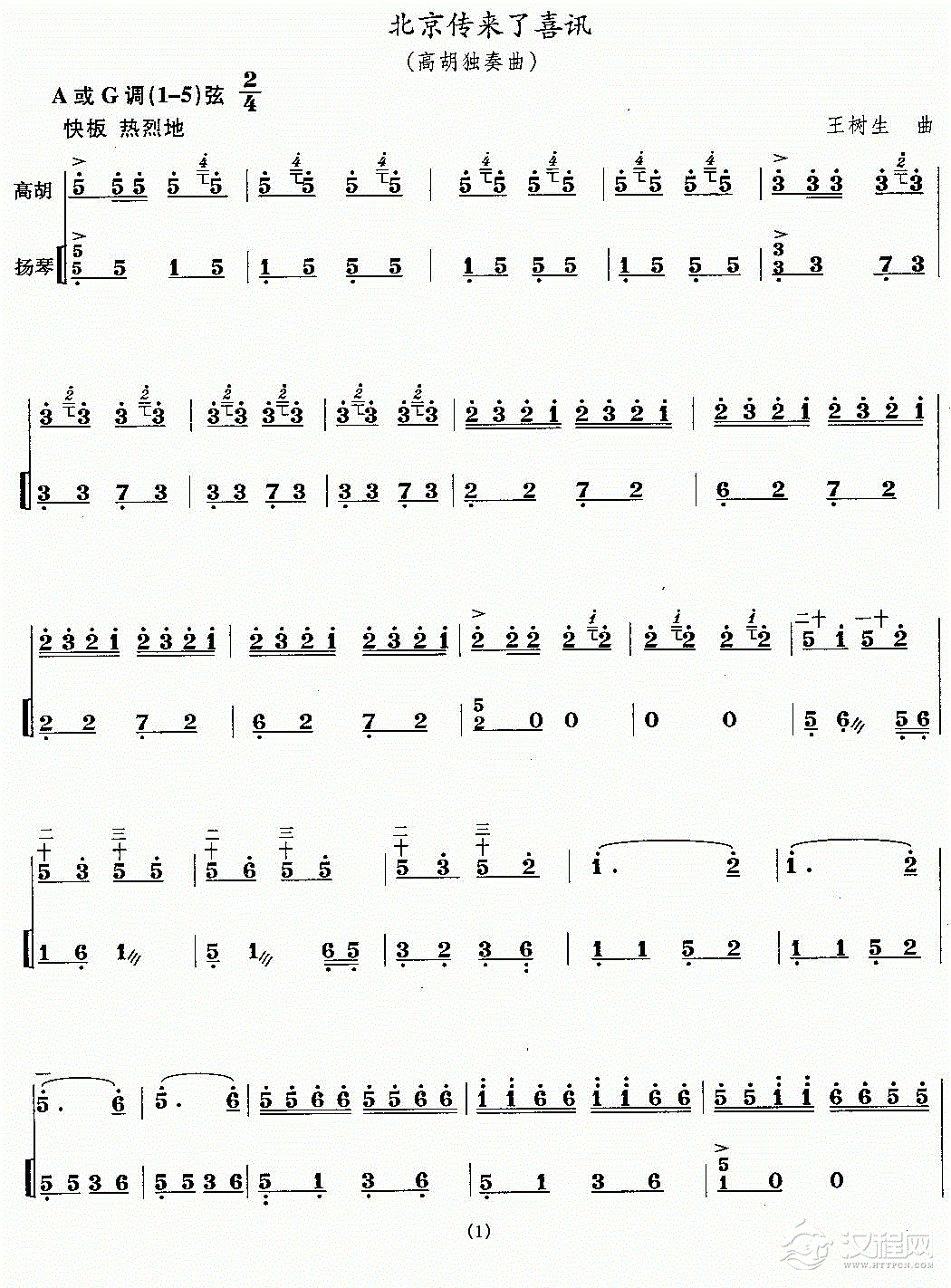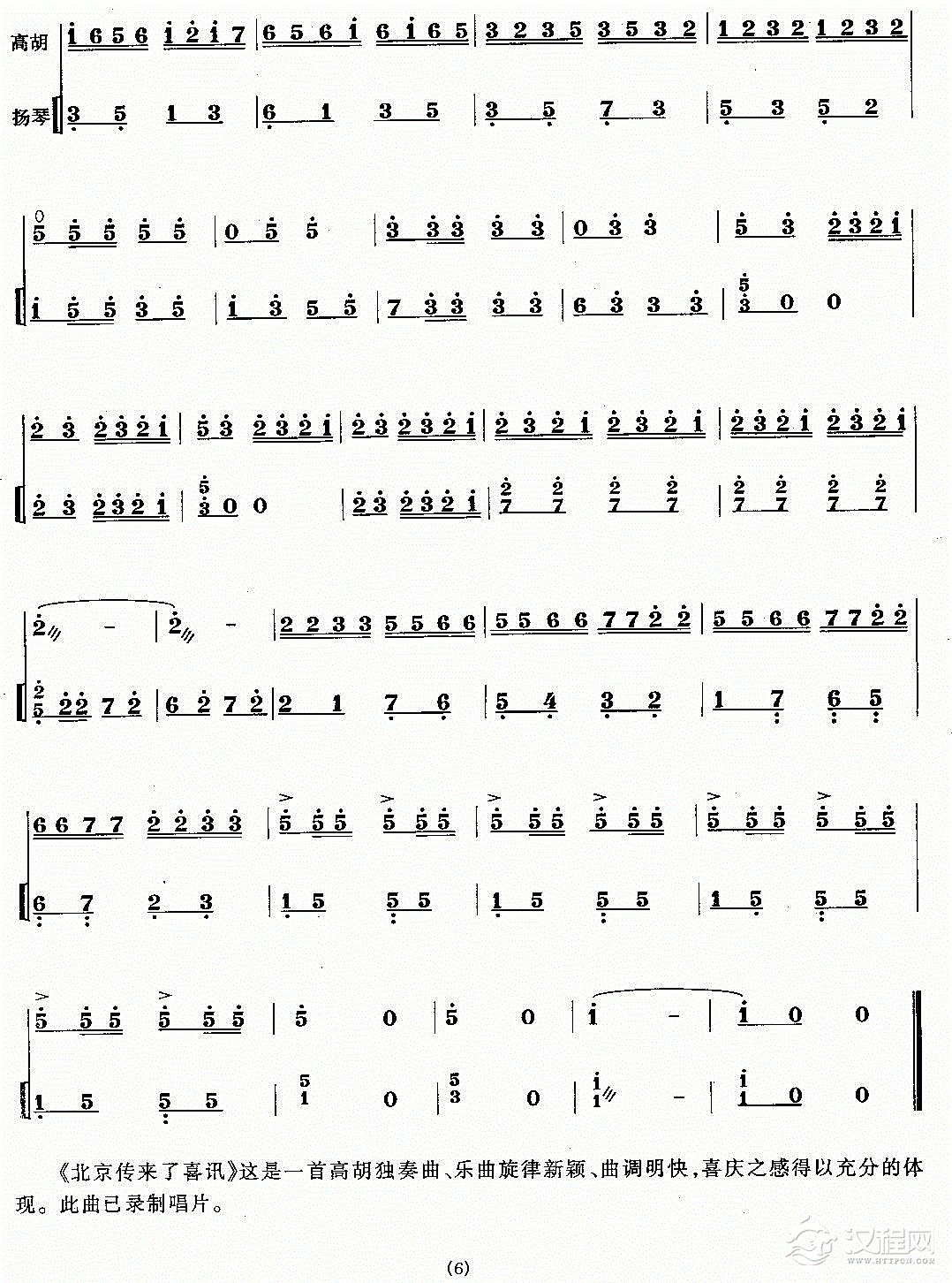 曲谱大全板胡简谱《喜洋洋》