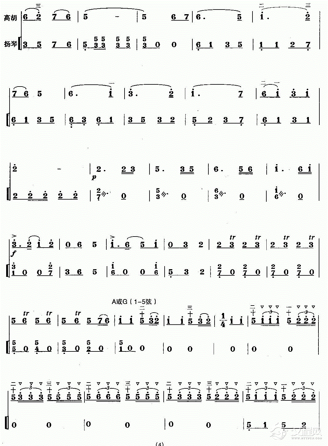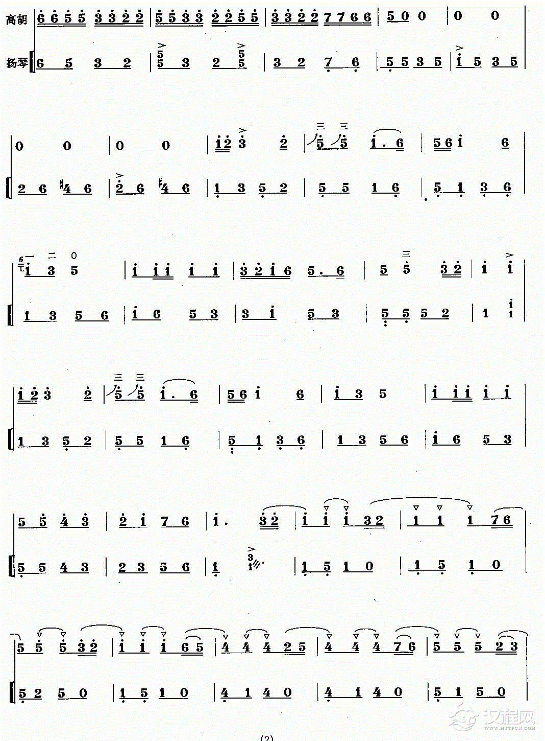 曲谱大全高胡谱子《彩云追月》二胡与笛子主旋合成谱