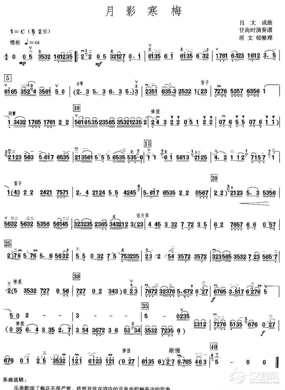 古筝谱《彩云追月》