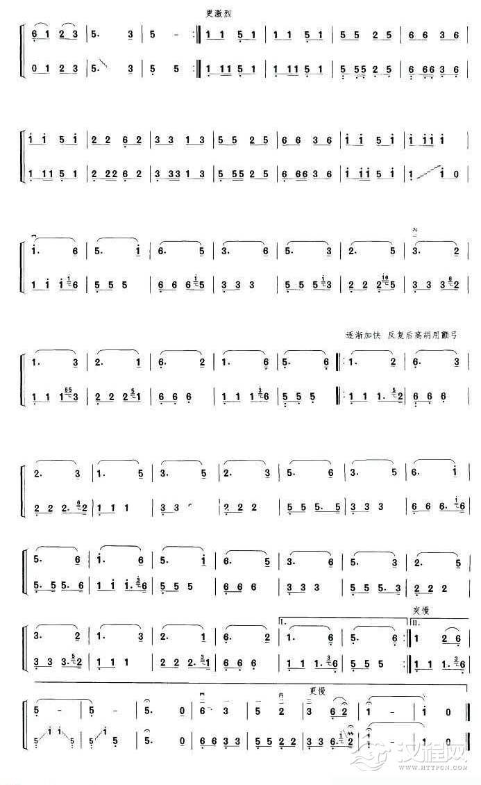 曲谱大全板胡考级曲谱《莽原情》八级