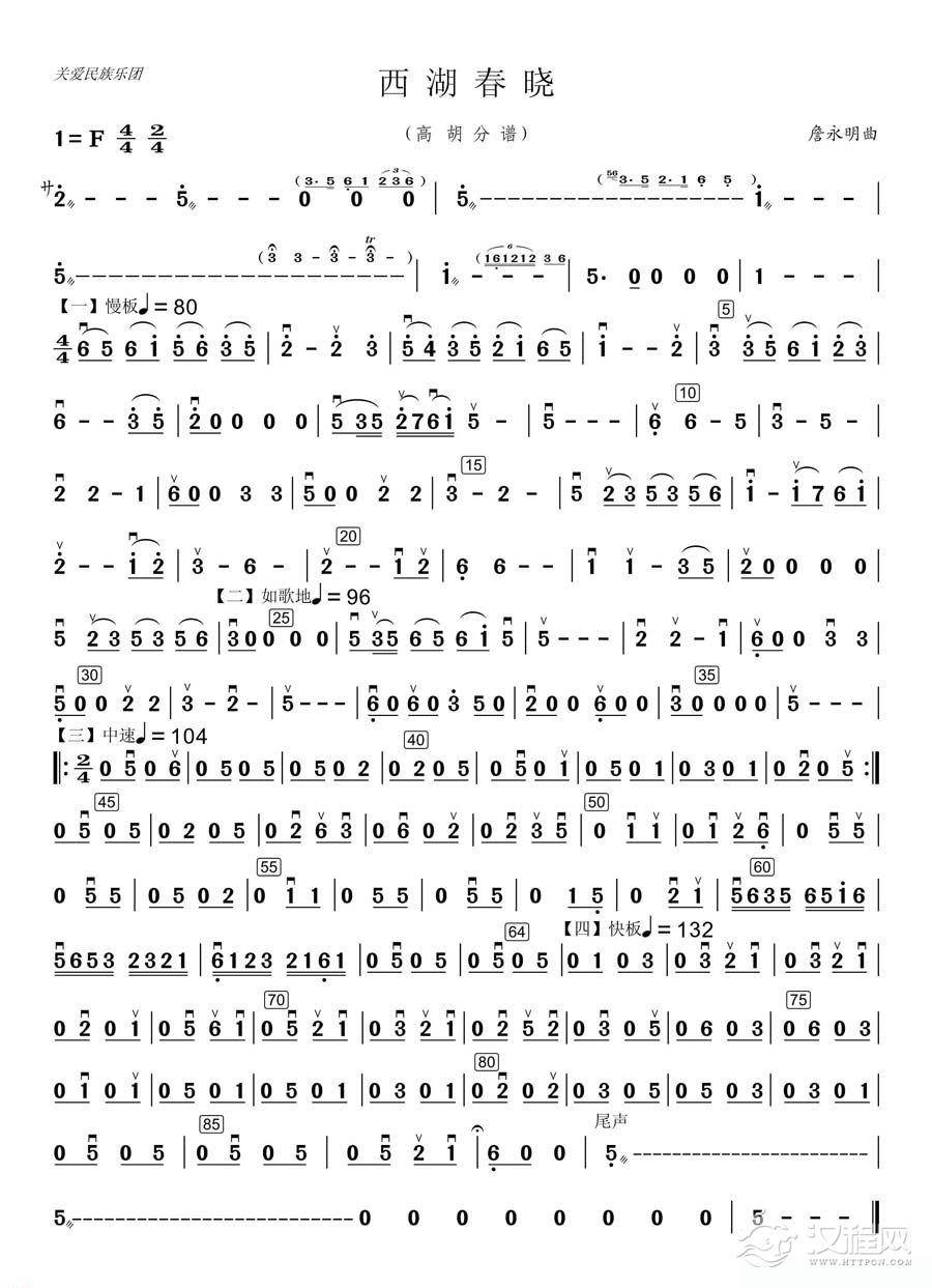 曲谱大全板胡考级曲谱《湖边春色》五级