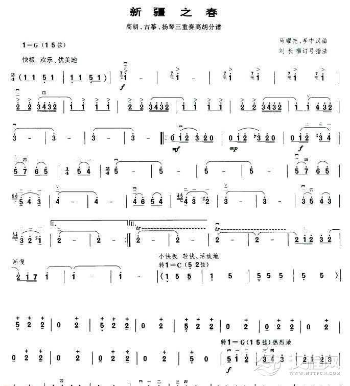 曲谱大全板胡考级曲谱《绿州新歌》五级