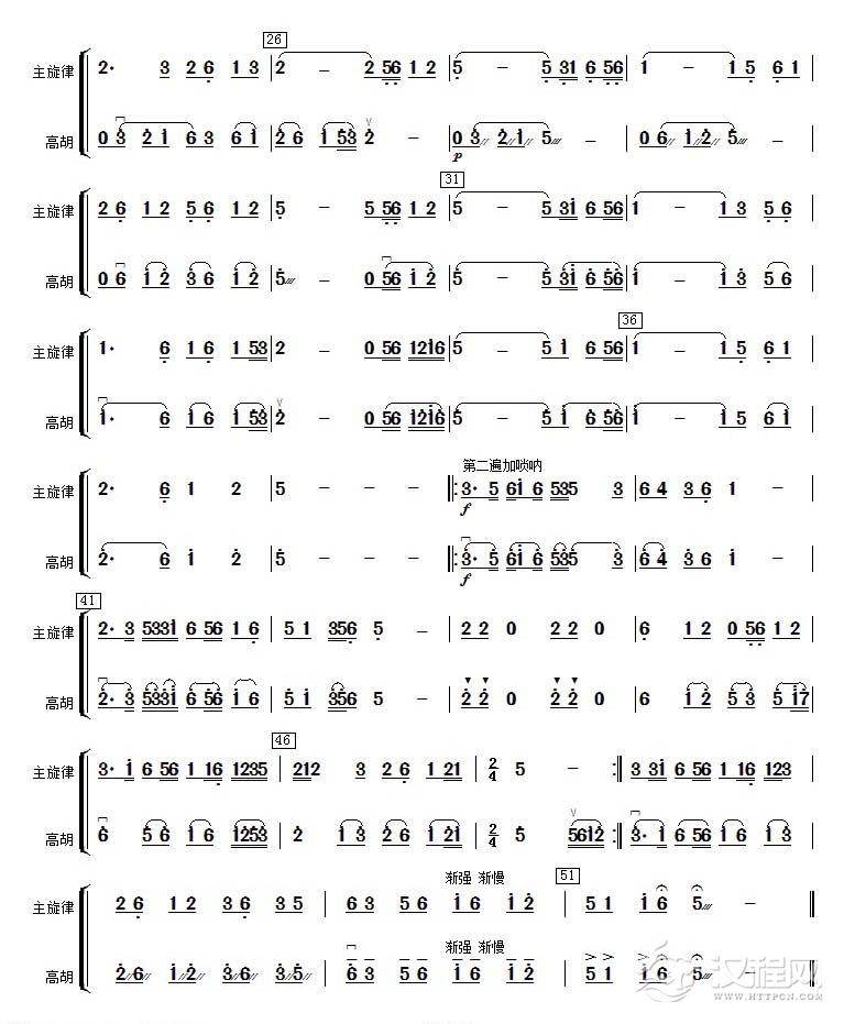 曲谱大全板胡考级曲谱《湖边春色》五级
