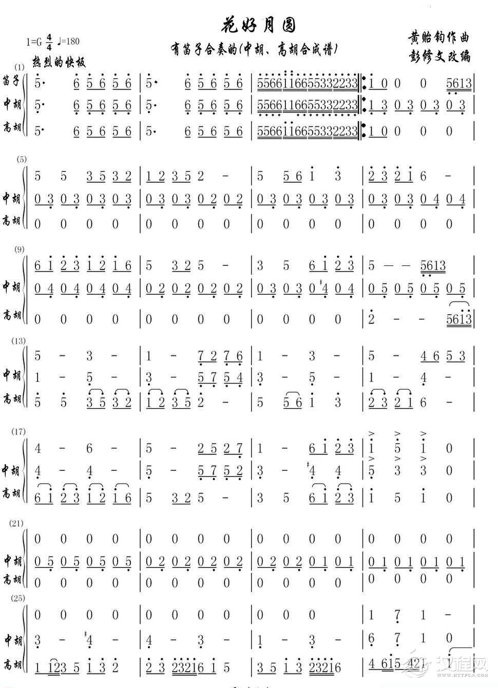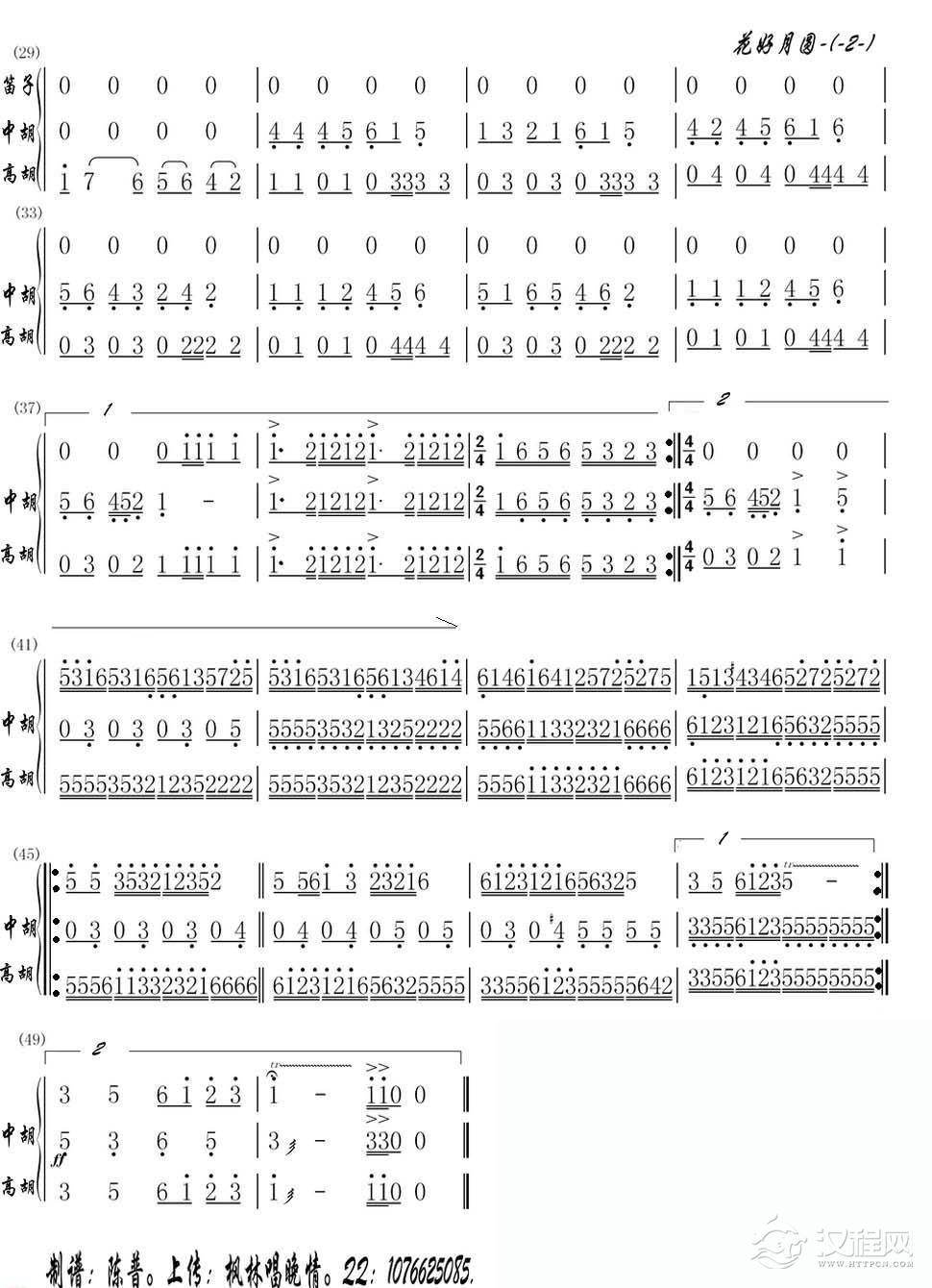 曲谱大全高胡分谱《花好月圆》主旋律与高胡分谱
