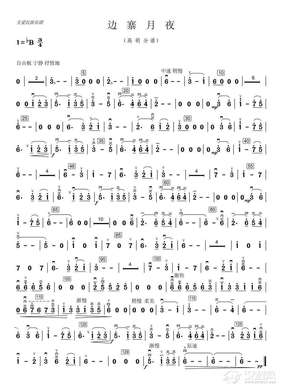 曲谱大全板胡考级曲谱《彩霞》七级