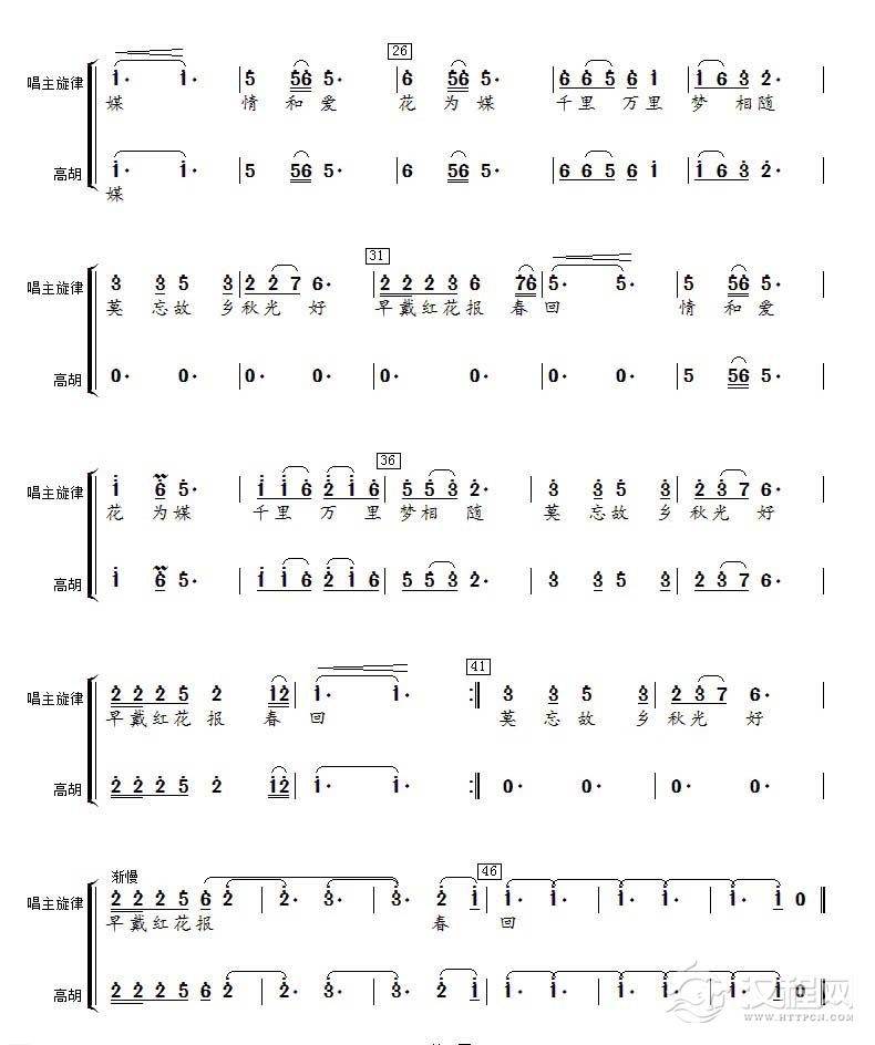 曲谱大全高胡分谱《花好月圆》中胡高胡合成分谱