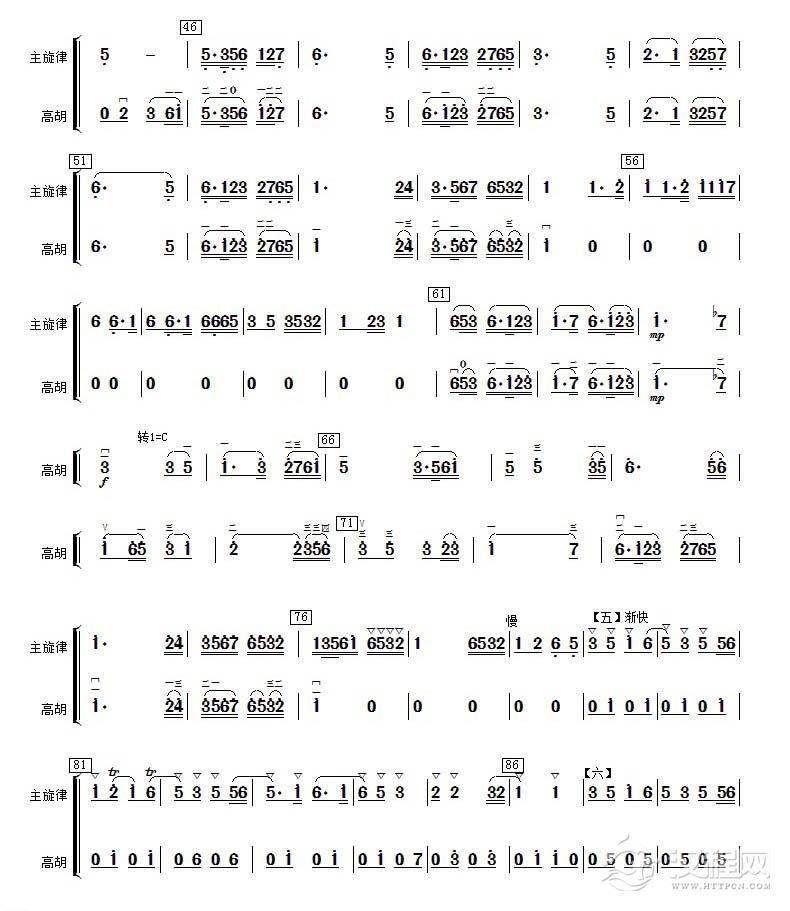 曲谱大全板胡谱《云雀》板胡分谱