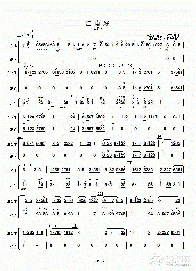 曲谱大全高胡分谱《春天的故事》
