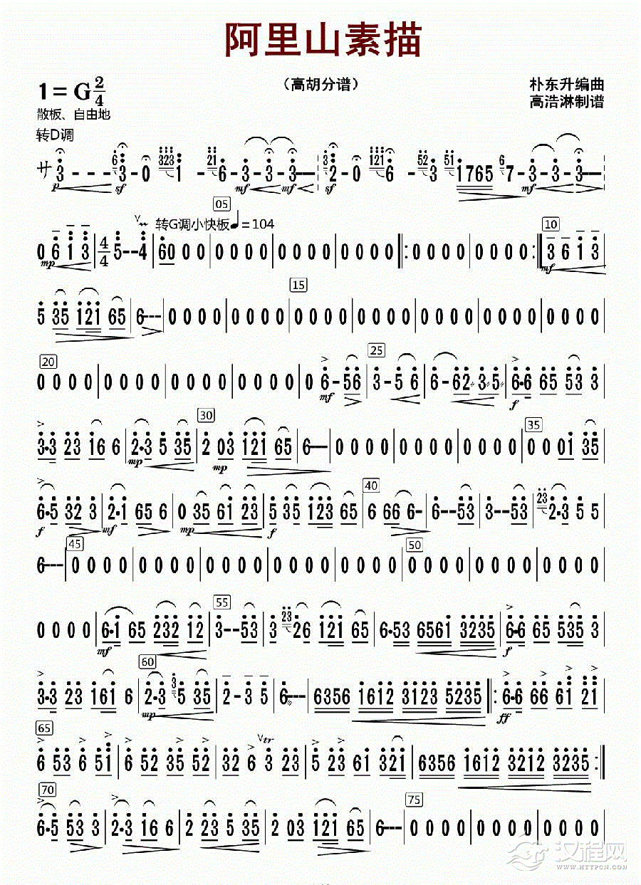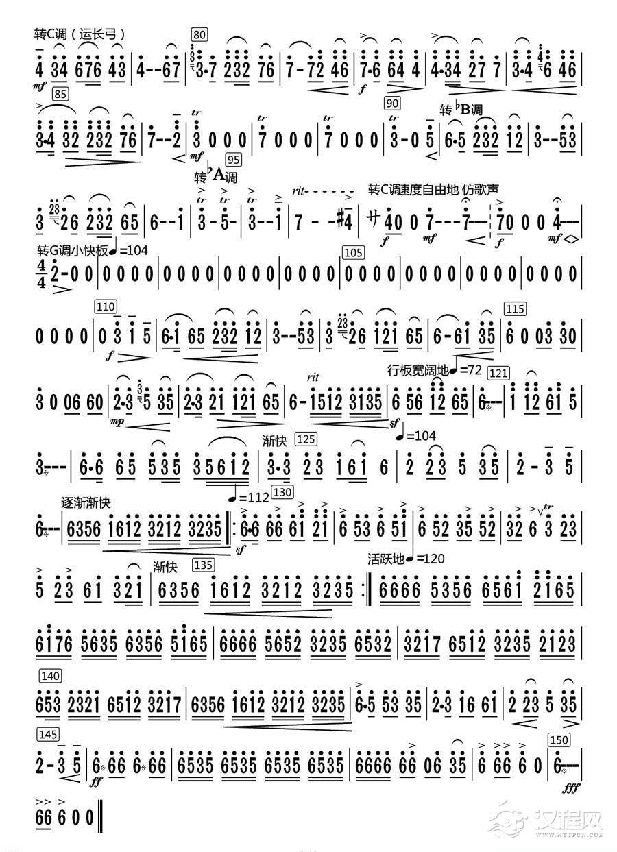 曲谱大全板胡谱《云雀》板胡分谱