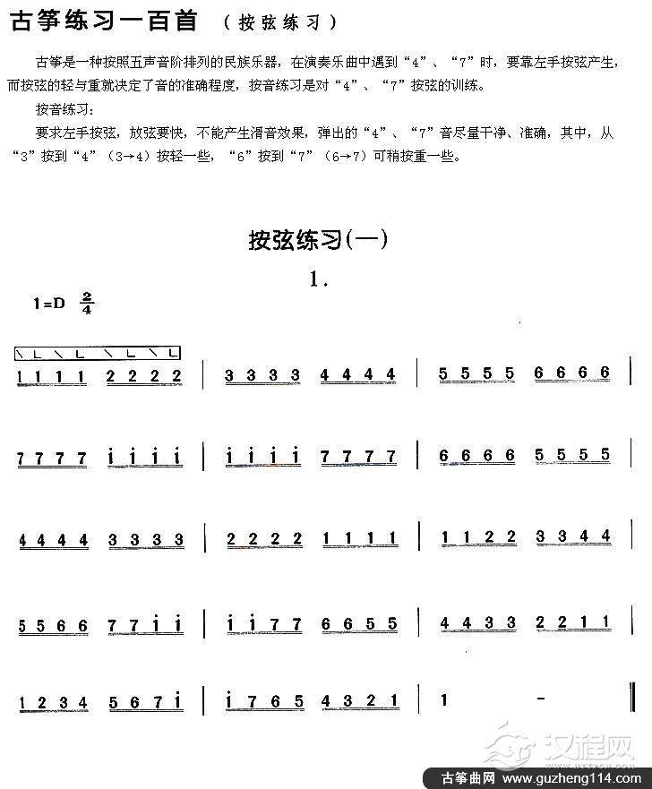 曲谱大全古筝按弦练习(二)